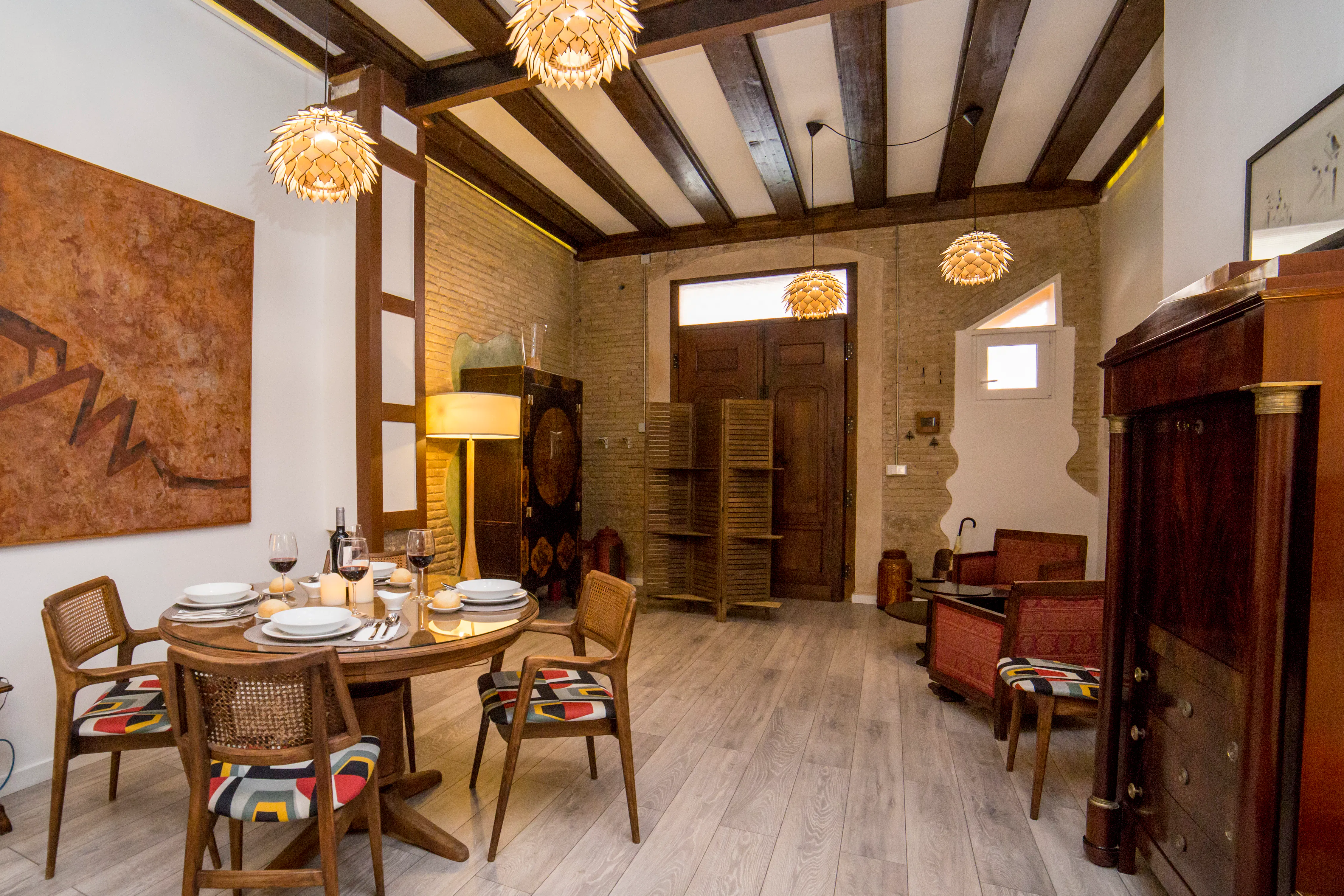🌟 Exclusive Apartment in the Heart of Ruzafa, Valencia 🌟 Discover this stylish apartment in Ruzafa, Valencia’s most vibrant neighborhood! Just 15 minutes from Estación del Norte, the AVE station, and the city center, with easy access to Bailén, Alacant, and Xátiva metro stations, this property combines convenience, connectivity, and a lively urban lifestyle 🚉✨. Surrounded by restaurants, bicycle rentals, supermarkets, and charming terraces, you can fully enjoy the authentic Valencian experience. This ground-floor apartment features a modern and elegant design with a spacious living-dining area and a fully equipped open kitchen. Appliances include a high-end fridge, oven, microwave, Airfryer, Nespresso coffee machine, toaster, and wine cooler 🍳☕🍷. The apartment also comes with TV, washing machine, dryer, and all necessary kitchenware for a worry-free stay. With 130 m2, the apartment has two large double bedrooms, each with an ensuite bathroom, plus an additional guest toilet for extra convenience. High ceilings with wooden beams add character, while air conditioning and heating ensure comfort year-round. Ample storage space, built-in wardrobes, and excellent internet connectivity complete the home. 💡 Utilities (electricity, water, gas, and internet) are included up to €150/month. An inventory of household items will be provided for tenant use. End-of-stay cleaning fee: €215. 📅 Rental Conditions: • Seasonal rental contract required • Minimum stay: 1 month | Maximum stay: 11 months • Security deposit: one month’s rent 🚫 Registration (empadronamiento) is not permitted 🏡 This property is rented exclusively as temporary housing, not for tourism...