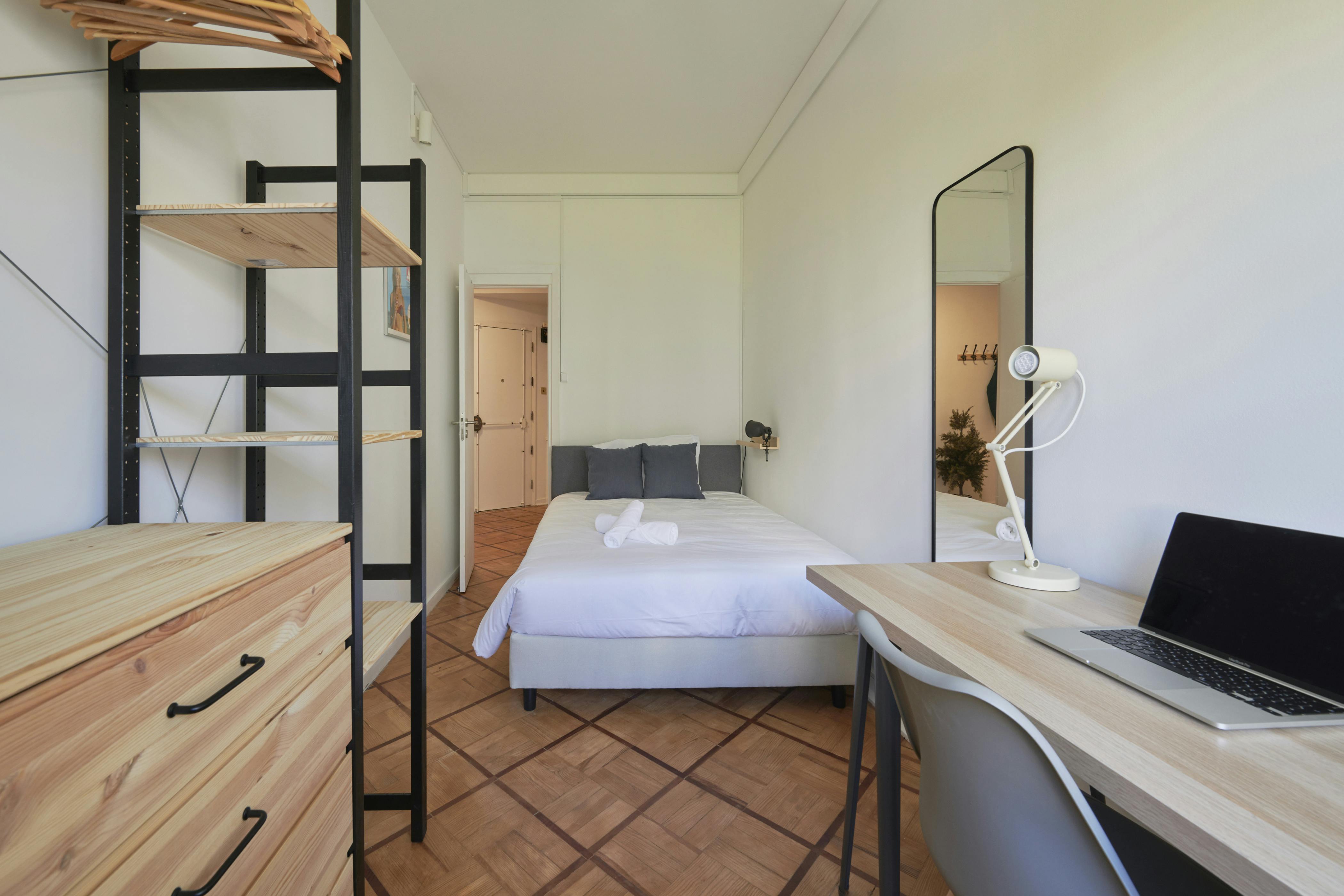 🏡 Cozy Room in a T6 Apartment Experience comfort and tranquility in this beautifully designed bedroom, perfect for students and professionals alike. The room's bright interiors create a warm and inviting atmosphere, making it a wonderful place to relax and unwind. Room Features: - Spacious Closet: Plenty of storage space for all your belongings. - Personal Desk: Ideal for reading, studying, or working in peace. - Weekly cleaning is included to ensure a tidy and comfortable living space. - The bathroom is shared among all the rooms in the apartment. Provided Items: - Pillow and Pillow Protector - Duvet and Mattress Protector Location: - Supermarket: Just a 1-minute walk away for all your daily needs. - Metro Station: Conveniently located a 5-minute walk from the property, making commuting a breeze. Please note that HousingAnywhere is an online booking platform, so exchanging contact details and scheduling viewings is not possible. To reserve this accommodation, send a booking request or a message with your age and occupation. I look forward to hearing from you...