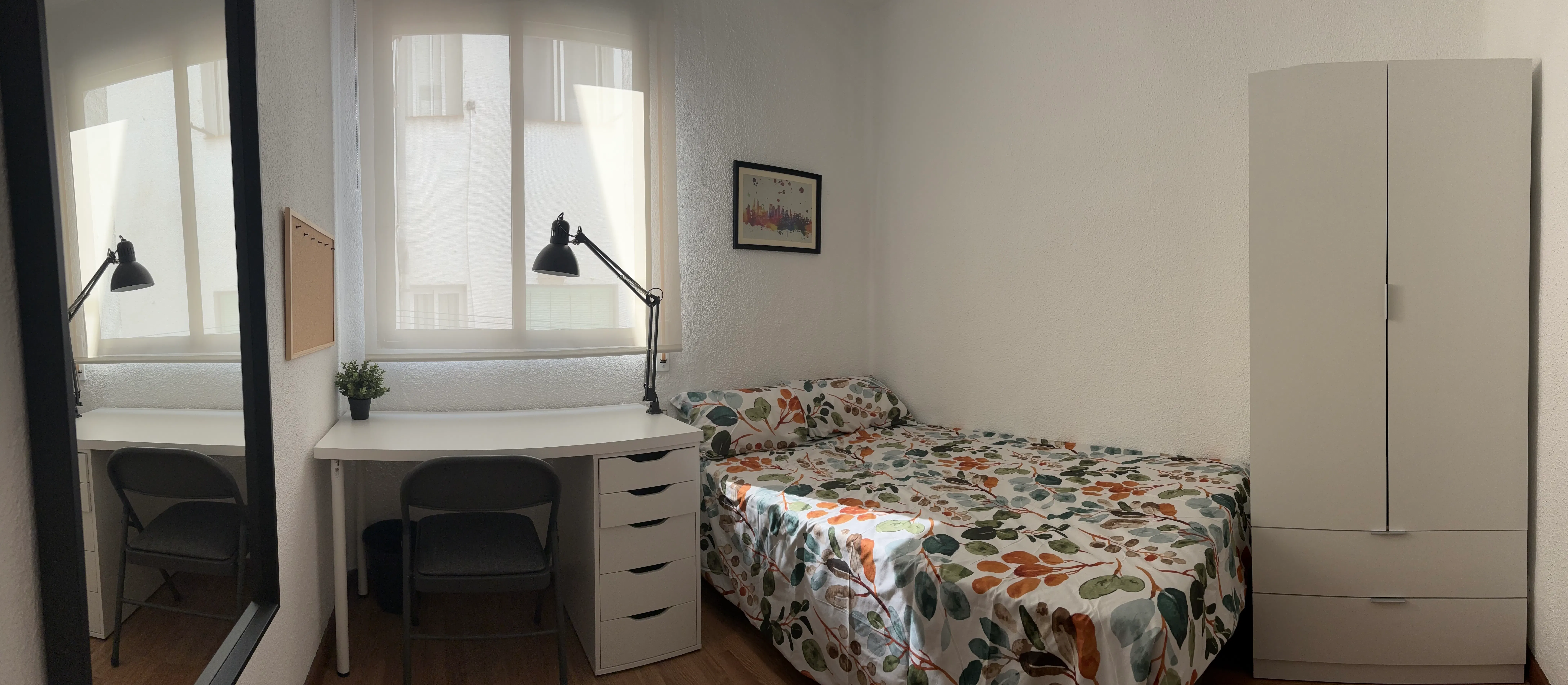 Welcome to a neighborhood with the city's history and full of life. This apartment has more than 100 years of history in my family. Adapted to today's needs, it offers all the opportunities to live a unique and unrepeatable student experience. 2 bright rooms where you can spend moments of rest and with a pleasant place to study. Equally bright kitchen fully equipped with washing machine and dishwasher where you can prepare the day's meals. And a dining room where you can share good times with your fellow student. It is an advantage to not have too many colleagues with whom to share common areas. This apartment offers tranquility and silence at the same time that one lives in the heart of the city. Located just 10 minutes walk from the Moncloa and Argüelles metro stations and buses at the door to emblematic places of the city. Supermarket next door, shops of all kinds, cafes and restaurants with a varied offering as well as a classic market offering the best products already cooked to taste. An area full of life and culture with a cozy home that offer the perfect combination for a wonderful experience. Please note: - Rent payments are each 2 months. - Monthly cleaning of common areas is included, and room cleaning is possible if this service is requested. - Check-ins are allowed up to 22:00. Later check-ins are not possible. - in this platform is not possible to exchange contact details before booking. If you would like to book this accommodation, please send me a booking request or message and mention your age and occupancy....