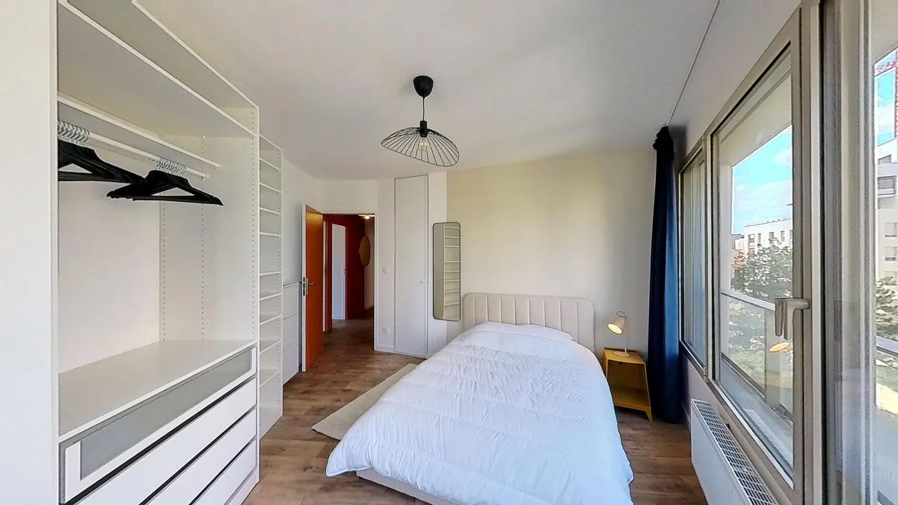 APPARTEMENT 5 PIÈCES AVEC BALCON Notre agence vous présente cette colocation d'un studio et de 3 chambres, située au 60 avenue Joliot Curie à Bordeaux. LA CHAMBRE Cette chambre possède un lit double, bureau, placard de rangement. Elle est lumineuse grâce à ses grandes fenêtres. LES ESPACES COMMUNS La colocation propose une belle pièce de vie lumineuse (traversante) meublée avec table à manger, cuisine ouverte, espace salon. La cuisine est équipée du nécessaire : plaque de cuisson et hotte, four et micro-ondes, toasteur, bouilloire, machine à café, micro-ondes, frigidaire, lave-vaisselle. Le salon se compose d'un beau canapé vert olive, de 4 fauteuils design, tapis, table basse, TV et meuble TV. Un espace "bar" autour des baies vitrées vous permettra de partager un moment convivial entre colocataire, manger sur le pouce ou travailler. Le studio du premier possède sa propre salle d'eau. La salle de bain du 1er est partagée avec les 3 chambres. Elle propose une douche à l'italienne, WC, meuble vasque, ainsi qu'un sèche-serviette. Le chauffage est collectif. Cet appartement est complété par la fibre optique, pour un accès internet haut débit. Il se situe au 2e étage d'un immeuble avec ascenseur. LE QUARTIER Profitez de la proximité des commodités, des loisirs et des transports en commun pour une expérience de vie idéale : Idéalement desservi, le quartier est à 5 minutes à pied de l'arrêt "Joliot Curie" du bus 31 ainsi qu'à 15 min tram A arrêt Stalingrad.Pour vos courses, plusieurs supermarchés comme Carrefour Market, Auchan Supermarché et Leclerc sont disponibles en moins de 10min par les transports en commun. Pour vos loisirs, de nombreux commerces, bars et restaurants seront accessibles dans l'hypercentre de Bordeaux. Le jardin botanique de Bordeaux est à 20 minutes à pied. Le Cinéma Mégarama Bordeaux est à seulement 15 minutes. Le quartier est idéal pour les étudiants avec l'Université de Bordeaux - Campus Bastide à 20 minutes à pied et l'IUT Montaigne à 20min également. Les informations sur les risques auxquels ce bien est exposé sont disponibles sur le site Géorisques : (hidden) Montant estimé des dépenses annuelles d'énergie pour un usage standard : 549 € par an. Prix moyens des énergies indexés sur l'année 2021 (abonnements compris...