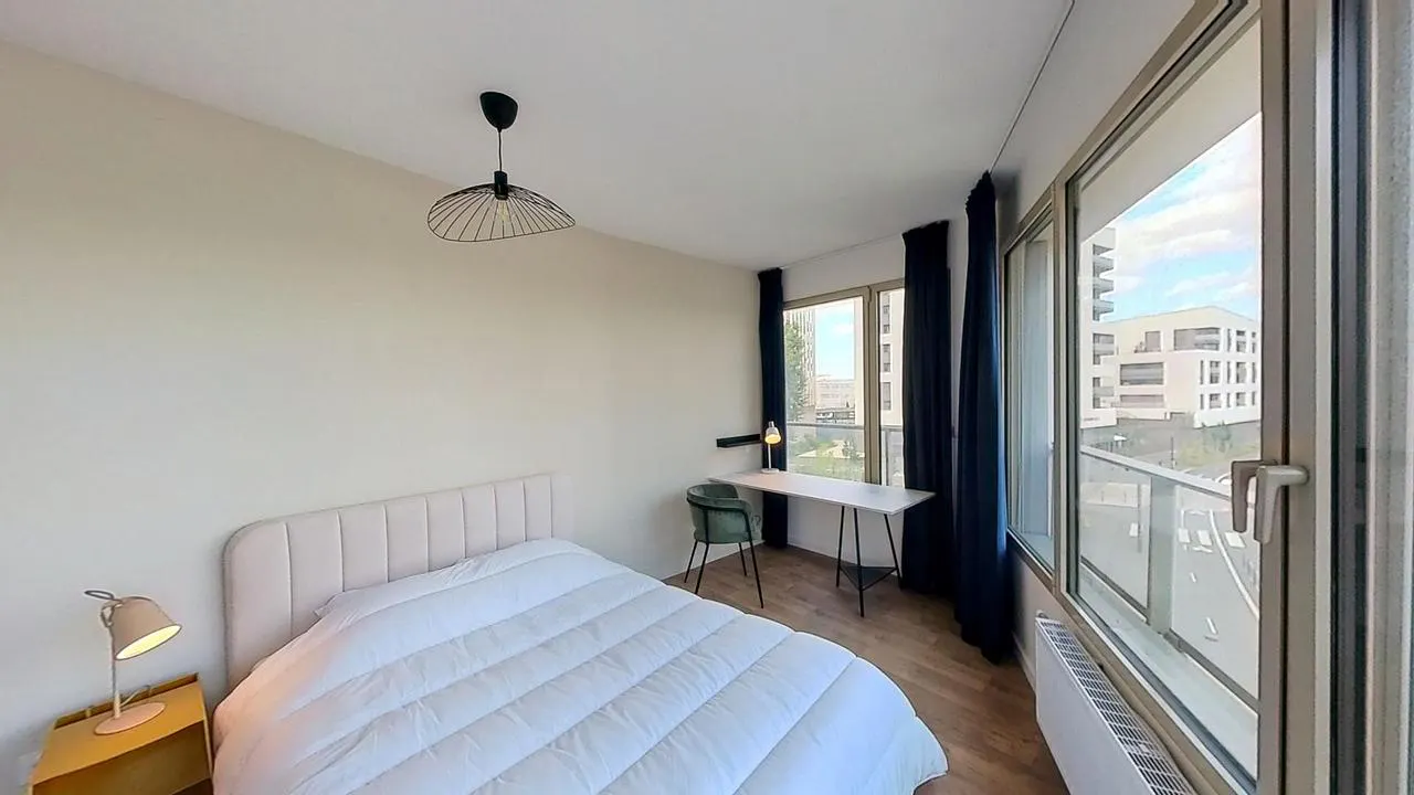 APPARTEMENT 5 PIÈCES AVEC BALCON Notre agence vous présente cette colocation d'un studio et de 3 chambres, située au 60 avenue Joliot Curie à Bordeaux. LA CHAMBRE Cette chambre dispose d'un lit double, bureau, rangement. Elle donne accès au balcon partagé avec la salle d'eau. LES ESPACES COMMUNS La colocation propose une belle pièce de vie lumineuse (traversante) meublée avec table à manger, cuisine ouverte, espace salon. La cuisine est équipée du nécessaire : plaque de cuisson et hotte, four et micro-ondes, toasteur, bouilloire, machine à café, micro-ondes, frigidaire, lave-vaisselle. Le salon se compose d'un beau canapé vert olive, de 4 fauteuils design, tapis, table basse, TV et meuble TV. Un espace "bar" autour des baies vitrées vous permettra de partager un moment convivial entre colocataire, manger sur le pouce ou travailler. Le studio du premier possède sa propre salle d'eau. La salle de bain du 1er est partagée avec les 3 chambres. Elle propose une douche à l'italienne, WC, meuble vasque, ainsi qu'un sèche-serviette. Le chauffage est collectif. Cet appartement est complété par la fibre optique, pour un accès internet haut débit. Il se situe au 2e étage d'un immeuble avec ascenseur. LE QUARTIER Profitez de la proximité des commodités, des loisirs et des transports en commun pour une expérience de vie idéale : Idéalement desservi, le quartier est à 5 minutes à pied de l'arrêt "Joliot Curie" du bus 31 ainsi qu'à 15 min tram A arrêt Stalingrad.Pour vos courses, plusieurs supermarchés comme Carrefour Market, Auchan Supermarché et Leclerc sont disponibles en moins de 10min par les transports en commun. Pour vos loisirs, de nombreux commerces, bars et restaurants seront accessibles dans l'hypercentre de Bordeaux. Le jardin botanique de Bordeaux est à 20 minutes à pied. Le Cinéma Mégarama Bordeaux est à seulement 15 minutes. Le quartier est idéal pour les étudiants avec l'Université de Bordeaux - Campus Bastide à 20 minutes à pied et l'IUT Montaigne à 20min également. Les informations sur les risques auxquels ce bien est exposé sont disponibles sur le site Géorisques : (hidden) Montant estimé des dépenses annuelles d'énergie pour un usage standard : 549 € par an. Prix moyens des énergies indexés sur l'année 2021 (abonnements compris...