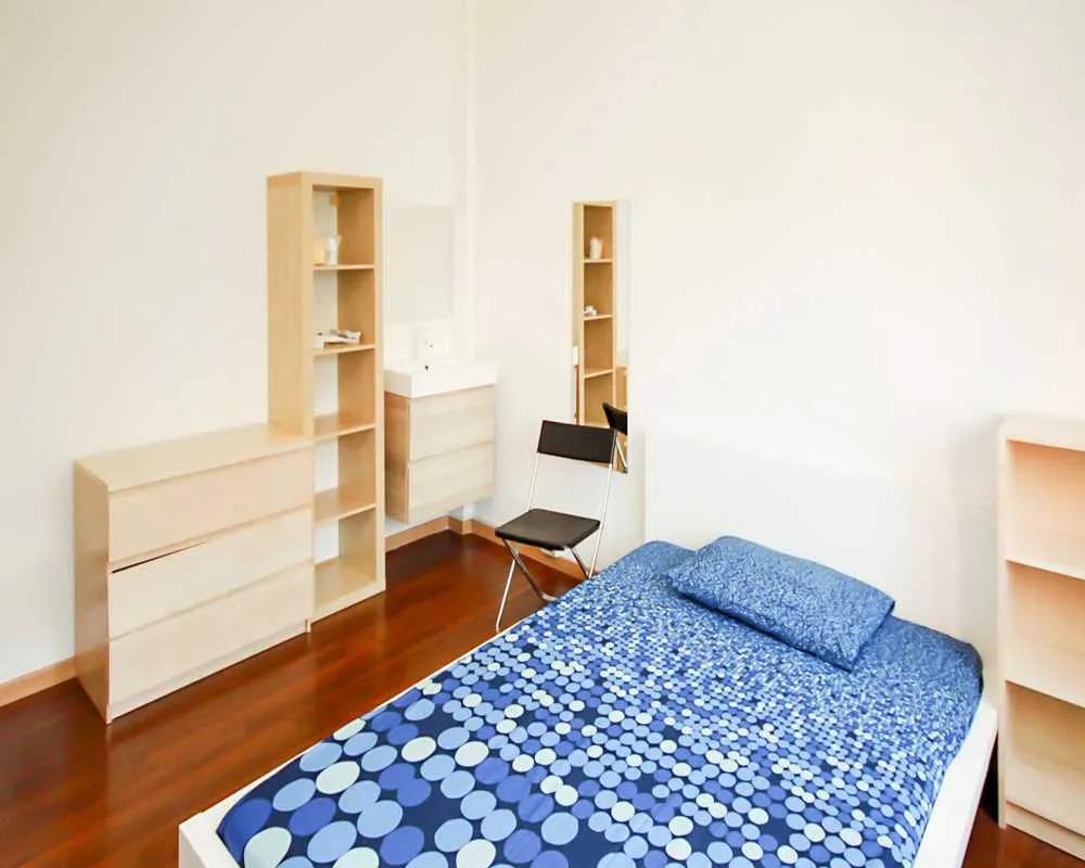 Single room in a shared apartment, composed by 8 bedrooms and 3 bathrooms. Of about 17 sqm with a one and a half bed and a work station. With wifi, concierge services, dishwasher, washing machine. Energy class: G, IPE 261.14 Kwh/Sqm year. Current tenants: 1: 23, Male, Student 5: 25, Male, Student 6: 25, Male, Student Please be aware that HousingAnywhere is an online booking platform. Therefore exchanging contact details and offering viewings is not possible. If you would like to reserve this accommodation, send me a booking request or a message and please mention your age and occupation. I look forward to talking to you! CONTRACT Please, note that to all our listings we apply fortnightly contracts. This means that If you check-in during the first half of the month, you will be charged for the full month. If you check-in during the second half of the month, you will only be charged for the second half. The second half of the month starts on the 16th. If you check-out during the first half of the month, you will only pay until the 15th of that month. If you check-out during the second half of the month, you will be charged the full month....