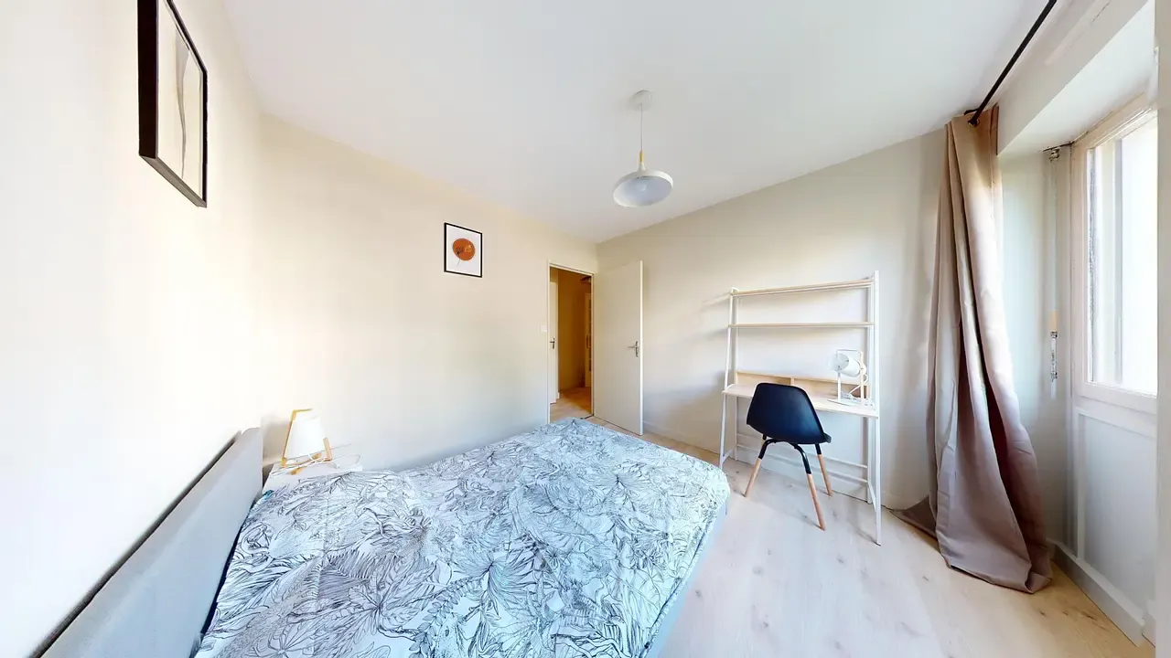 APPARTEMENT 5 PIÈCES AVEC BALCON Notre agence vous présente cette colocation de 4 chambres de 79 m2, à louer au 87 Rue Des Banchais à Angers (49100). LA CHAMBRE Cette chambre est équipée d'un lit double, d'un chevet, d'une armoire et d'un bureau. LES ESPACES COMMUNS Images non contractuelles. Les visuels 3D ne sont qu'une projection du rendu des travaux. Il est probable que les meubles et finitions soient différents en définitive. Cet appartement de cinq pièces dispose des espaces suivants : Un salon qui dispose d'un canapé, d'une table et de chaises. Une cuisine, ouverte sur le salon avec un réfrigérateur, des plaques de cuisson, une hotte, un four, un lave-vaisselle et de nombreux rangements. Ces espaces sont très lumineux grâce à plusieurs fenêtres et une grande porte-fenêtre qui donne sur le balcon. Une salle d'eau avec une douche, un meuble vasque, un miroir, une machine à laver et des rangements. Les WC sont séparés de la salle d'eau. L'appartement est équipé d'un chauffage individuel fonctionnant à l'électricité. La fibre optique y est disponible. Il se situe au rez-de-chaussée d'un immeuble. LES EXTÉRIEURS Profitez d'encore plus d'espace grâce à un balcon. Une cave est associée à cet appartement. LE QUARTIER Pour vos courses alimentaires, un Supermarché G20 se situe à huit minutes et un ALDI à 15 minutes du logement. Pour les étudiants, l'Université d'Angers, se trouve à 16 minutes en transport (ligne B). De plus, l'Université Catholique de l'Ouest est accessible en 25 minutes de bus (ligne 7). Une petite faim ? Le Time's Grill et le O'dinap vous attend à 5 minutes à pied du logement. Au niveau des transports, vous trouverez à proximité les arrêts suivants : Thuleau : ligne 5 Desjardins : ligne 4 Brisepotière : ligne B,4,5,30,31 Bail individuel à la chambre. Pas de caution solidaire. Chacun est libre de partir quand il veut sans se soucier des autres colocs, dès le moment où il respecte un mois de préavis. Eligible aux APL. Les informations sur les risques auxquels ce bien est exposé sont disponibles sur le site Géorisques : (hidden) Montant estimé des dépenses annuelles d'énergie pour un usage standard : 1377 € par an. Prix moyens des énergies indexés sur l'année 2021 (abonnements compris...