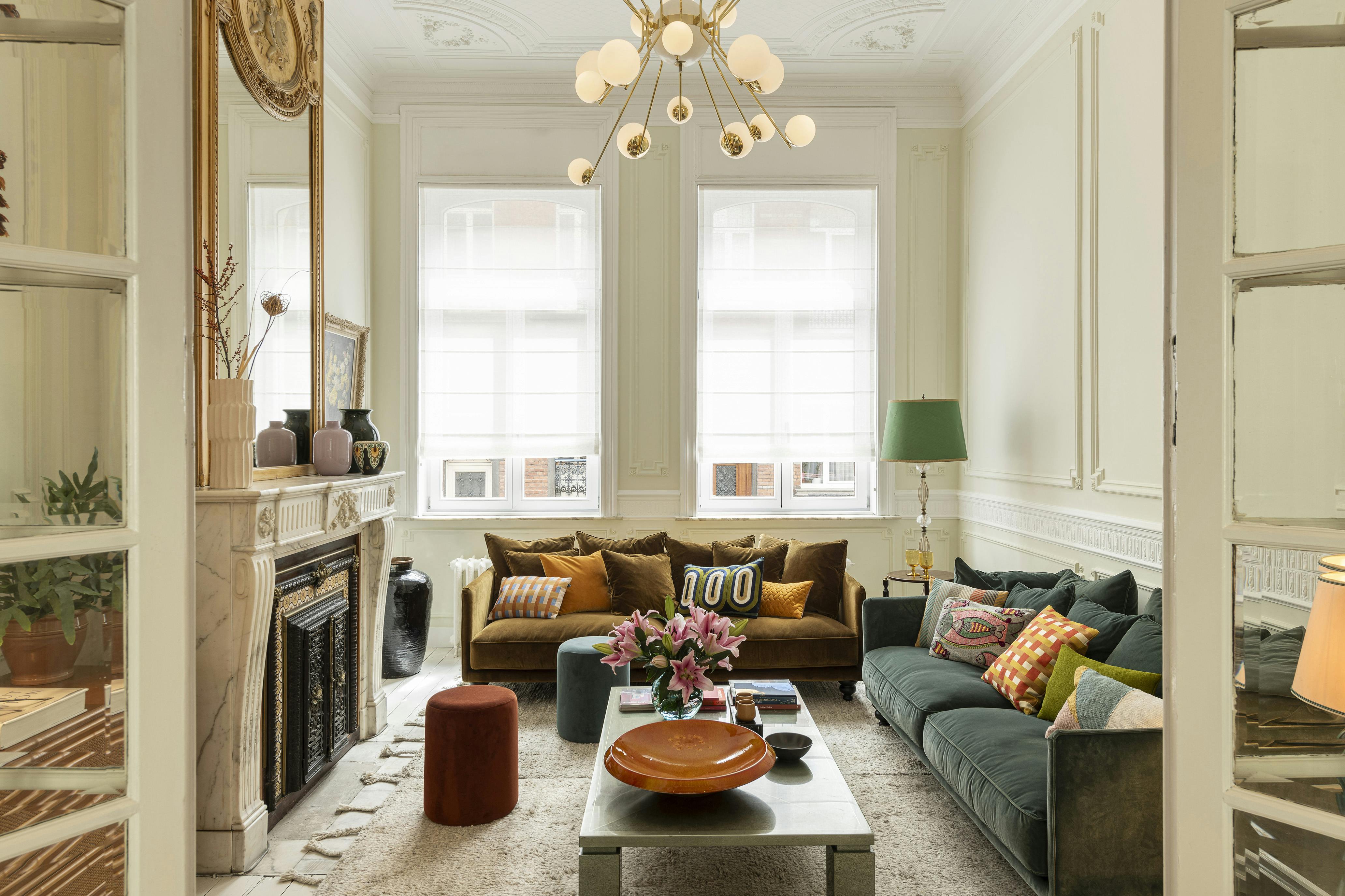 Sunny and spacious, this all-suite home provides each resident a full floor complete with a private bedroom, living room and bathroom. Step inside and discover a bright, airy environment including stained glass windows, marble fireplaces, and original hardwood floors, while colorful furniture infuse the common spaces with vibrance and cheer. Enjoy shared amenities including a gourmet kitchen, two home offices, a tv room, in-house laundry, secure bike storage, and guest rooms for visitors—then retreat to your large personal suite. Perfect for executives and their partners new to Brussels...