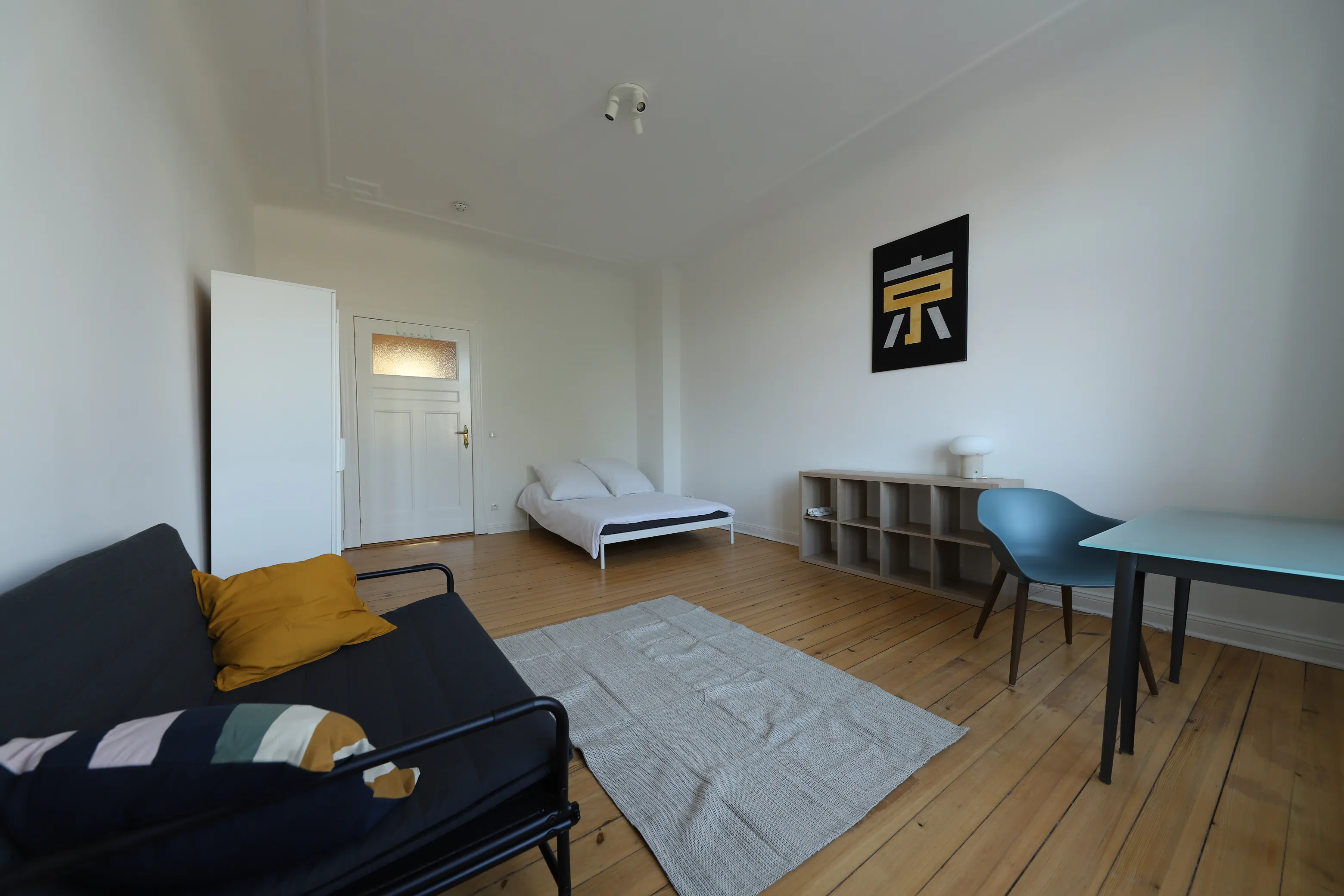 We created a student-friendly living space by selecting materials that transform the apartment into a peaceful environment with bright colors: a “feel good” vibe. The apartment has a brand new white lacquered kitchen and all you need to cook both gastronomic and on-the-go meals. It has Limoges dishes, fine glasses, good cutlery, and sharp cooking knives. Each room offers a single bed and (a) roomy closet(s). Laundry is a snap with an all-in-one washer-dryer. Washing machine and dryer - NO dishwaher - NO inside keys If you book this apartment, the following rules apply: If your booking start date is between the 1st to the 15th of the month, the full month's rent is due. If your booking start date is between the 16th and the last day of the month, the second half month's rent is due. If your end date of booking is between the 1st to the 15th of the month, the first half month's rent is due. If your end date of booking is between the 16th and the last day of the month, the second half month's rent is due. Smoking is not permitted. Please Note: The rental deposit is two month rent: - for the WG/ private room: Handover fee 100€ - for studio /apartment): Handover fee 150€ If we accept you as a tenant please deliver the following documents within 7 DAYS: proof of enrolment at your school/university, a bank statement which proves sufficient funds available to pay the rent - a work contract is also suitable. If we do not receive the documents within 7 days after you have completed the payment we will cancel the booking via HousingAnywhere and claim the first month according to their Terms&Conditions. If the move-in date is within these 7 days we need the documents 24 hours before move-in at the latest Before moving in, tenants must provide proof of valid personal liability insurance (“Haftpflichtversicherung”). This insurance covers damages caused to the apartment or to third parties. It is highly recommended in Germany and often included with personal property insurance (“Hausratversicherung”). Without proof of insurance, keys cannot be handed over...