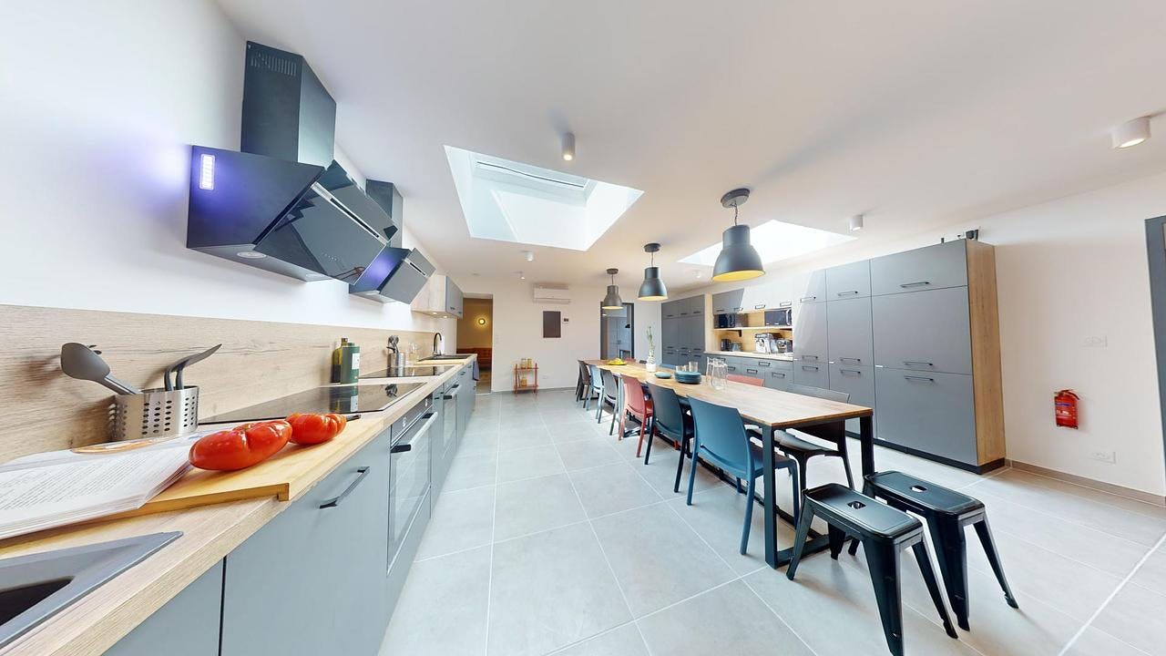 COLIVING DE 8 CHAMBRES AVEC SALLE DE BAIN PRIVATIVE ET DE 8 SUITES AVEC CUISINE ET SALLE DE BAIN PRIVATIVE Notre agence vous propose un coliving totalement neuf de 8 suites et 8 chambres dans un logement meublé situé au 40 Rue Thénard dans le 8e arrondissement de Lyon. Ce logement de 440 m2 est situé dans une impasse résidentielle et calme. 📌 L'emplacement de cet appartement est extrêmement avantageux, offrant un accès facile à diverses commodités essentielles à proximité, notamment : De nombreux restaurants proposant une variété de cuisines une pharmacie à 600 mètres (à 8 minutes) Une boulangerie, une pâtisserie, sandwicherie à 300 mètres (à 3 minutes) Une boucherie à 5 minutes Les Galeries Lafayette de Bron à 11 minutes Le supermarché Viviani à 1,8 km. L'hôpital Mermoz Pinel à 20 minutes Accès direct au périphérique permettant de rallier facilement en voiture les 4 coins de Lyon 🚉 En ce qui concerne les transports en commun, vous bénéficiez de : L'arrêt de métro D Mermoz-Pinel à 8 minutes ( 550 mètres) pour rejoindre le centre de la Presqu'ile (Bellecour) en 15 minutes Le tramway ligne T6 à 650 mètres. De nombreux arrêts de bus à proximité du logement tels que la ligne 26, 79, C15, C25 à moins de 900 mètres. 🌿Cette maison rénovée est idéalement située à proximité d’un parc de Parilly (moins de 10 minutes) offrant ainsi un cadre verdoyant pour les amoureux de la nature. ———— 🏡 Dans cette maison, vous découvrirez au rez-de-chaussée : une entrée avec un salon jeux / coin lecture un wc communs un salon avec télé connecté 65" + tous les services de streamings à la demande (Netflix / amazon prime / Disney +...) deux escaliers (un descendant au sous-sol et un à l'étage) une grande cuisine de 34 m2 huit suites équipées chacun d'un coin cuisine, d'une salle de bain et d'un espace nuit À l'étage, vous disposez de huit chambres avec salle de bain privative. Au -1, vous disposez : ♟️ d'une salle de jeux avec un bar et un baby foot à disposition 🎬 d'une salle de cinéma de 24 m2 avec un grand écran de projection 🧘🏼♀️ d'un coin détente avec une cuisine 🧺Un local technique avec une buanderie (machine à laver, des étagères d'une table à repasser, sèche linge) 💻 Une salle de coworking de 17 m2 ———— Bail individuel à la chambre. Pas de caution solidaire. Chacun est libre de partir quand il veut sans se soucier des autres colocs, dès le moment où il respecte un mois de préavis. Eligible aux APL. Coup de cœur pour cet appartement ! Les informations sur les risques auxquels ce bien est exposé sont disponibles sur le site Géorisques : (hidden) Montant estimé des dépenses annuelles d'énergie pour un usage standard : 2310 € par an. Prix moyens des énergies indexés sur l'année 2021,2022,2023 (abonnements compris...