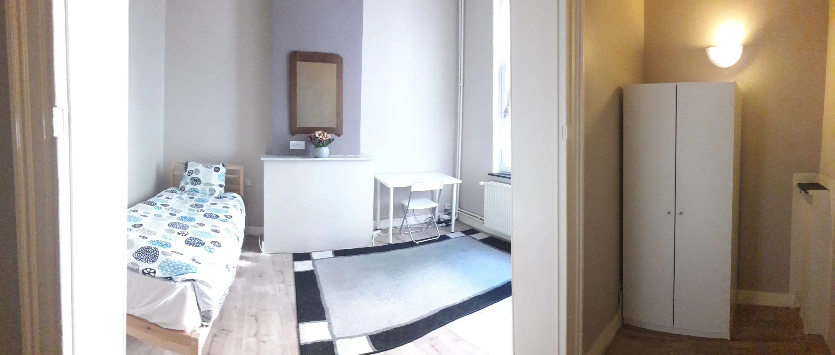 Room for rent on the first floor in a shared house with one big kitchen + 2 bathrooms and toilettes - The room is on second floor - Domiciliation is possible Location: - 5 minute walking to Campus Sint-Lucas KU Leuven, 10 mins to Vlerick Management School and Sint-Louis University - 10 minutes to Gare du Nord - Near tram 25,62,55,92,93, bus 65, 66 (within5 min walking), easy to go to the Brussels airport with bus 272 - In a calm and quiet area - Laundry shop is in front of the house, groceries shops/ supermarkets near by The monthly charge is 150 euros (including electricity, gas, water, internet, etc....