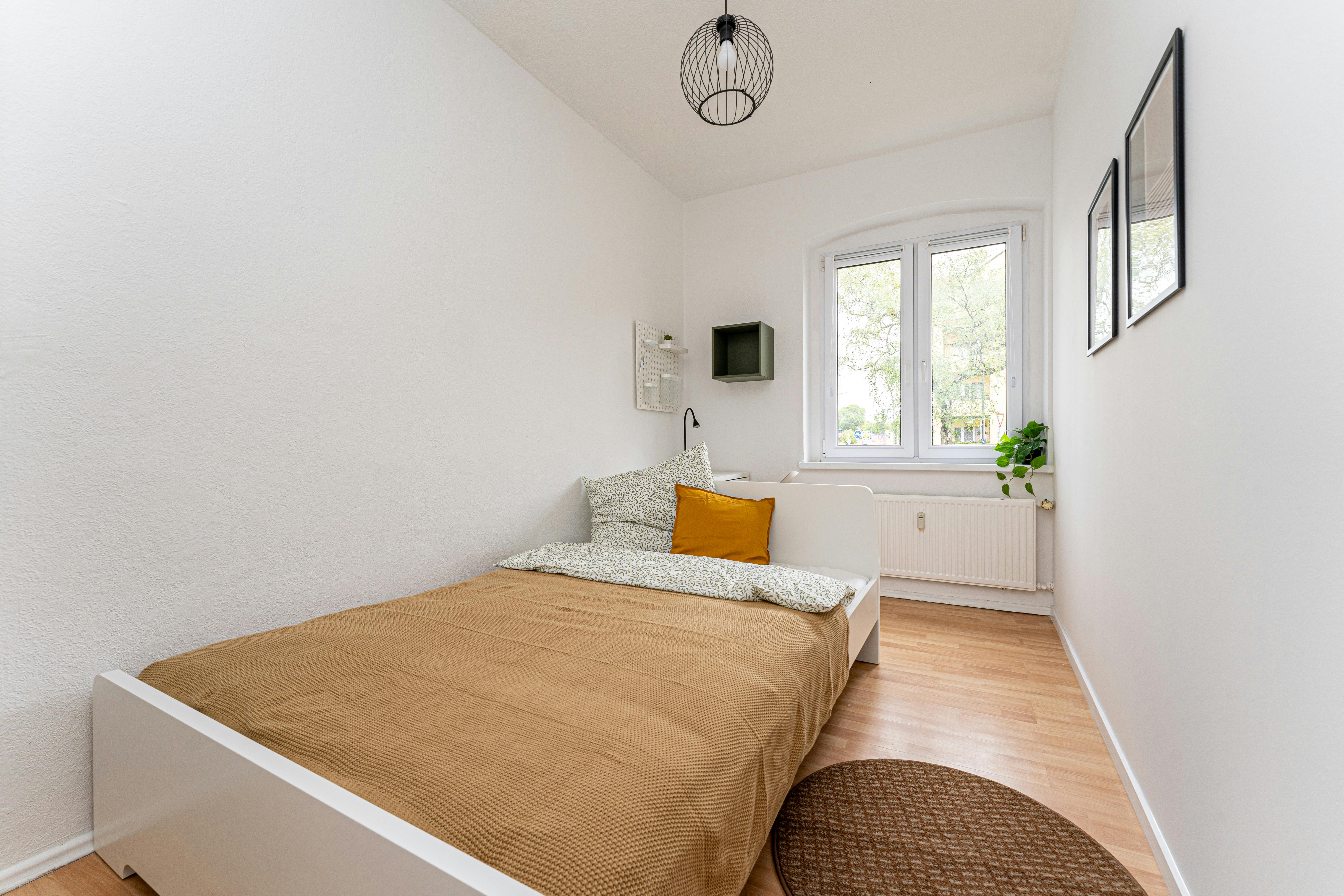 Room 3 Hi Guys, this is a fully furnished room in a shared flat. The room has a comfortable bed, a desk with chair and a wardrobe for your clothes. Also the common areas are fully equipped with washing machine, cooking equipment and all you need for your daily living. Anmeldung/Registration is possible. The monthly rent price is all inclusive (rent + heating + water + Internet + GEZ/german TV license fee). For the move in dates we have only the 1st or the 16th of each month a tenant can move in. In specific cases we have a flexible move in date, but this needs to discuss in our messages. plus the deposit of 950€, which needs to be payed before move in via bank transfer in a single payment....