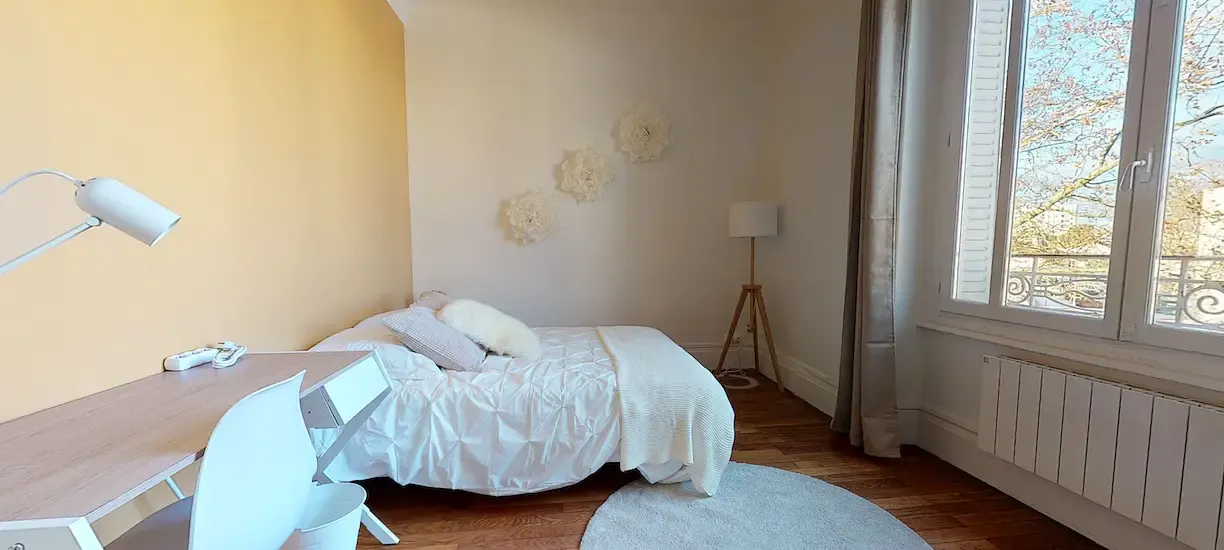 📍43 boulevard Ambroise Paré 2, Lyon 8 📷VISITE VIRTUELLE DISPONIBLE 📷 🏠LE LOGEMENT Notre agence vous présente cette colocation de 2 chambres de 46m2 très bien située dans le 8ème arrondissement de Lyon entre le quartier de Mermoz et de Laennec, quartiers dynamiques et commerçants, au 43 Boulevard Ambroise Paré. 🛏️LA CHAMBRE CHAMBRE 1 : Surface : 12m2 La chambre 1 de plus de 12m2 est très lumineuse grâce à sa grande double fenêtre et à son mur jaune pastel. Elle se compose d’un lit double, d’un bureau, d’une chaise et d’un placard avec plusieurs étagères 🛋️ESPACES COMMUNS L’appartement se compose d’une pièce de vie composée de 2 espaces : un espace cuisine et un espace salon. L’espace cuisine est totalement aménagé et équipé : four, frigo, lave-vaisselle, machine à café, plaques de cuisson et de nombreux rangements. L’espace salon est composé d’un bar avec tabouret, un canapé et une table basse. Une grande salle de bain avec cabine de douche, machine à laver et WC, située au niveau de l’entrée vient compléter cette colocation. 🏙️CADRE DE VIE Ce logement est idéalement situé à proximité de supérettes (Épiceries, Casino, La vie claire), de restaurants et fast food, d’un tabac, d’une pharmacie, d’une salle de sport, ainsi que des transports en commun. TRANSPORTS 🚇Métro D aux arrêts Laennec et Mermoz Pine à 5minutes à pied. 🚊Tram T6/T5/T2 à moins de 300 mètres. (Arrêts Laennec et Mermoz Pine aussi) 🚌 Plusieurs lignes de bus dont des lignes au service renforcé circulent à proximité de l’appartement. 💡SERVICES ET ÉQUIPEMENTS INCLUS Chauffage Eau chaude Eau courante Electricité Entretien de la chaudière Entretien de l'immeuble Gaz Internet Fibre Taxe Ordures Ménagères ———————————————————————— Bail individuel à la chambre. Pas de caution solidaire. Chacun est libre de partir quand il veut sans se soucier des autres colocs, dès le moment où il respecte un mois de préavis. Eligible aux APL. Les informations sur les risques auxquels ce bien est exposé sont disponibles sur le site Géorisques : (hidden) Montant estimé des dépenses annuelles d'énergie pour un usage standard : 1374 € par an. Prix moyens des énergies indexés sur l'année 2021,2022,2023 (abonnements compris...