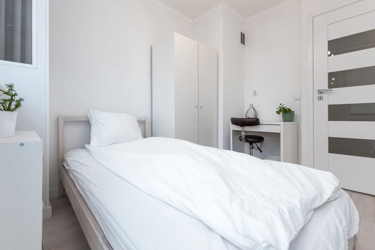 ✨ Cozy Single Room in a Spacious Shared Apartment – Perfect Location in Warsaw! ✨ 🏡 Apartment Features This inviting 4-room apartment on the 4th floor offers a practical and comfortable setup. You’ll find a functional kitchenette for preparing meals, one bathroom with toilet for extra convenience, and a welcoming hall. Each room is private, making it ideal for focused study or relaxation. 🛏️ Your Room The single room comes fully furnished, providing everything you need for a comfortable stay. It’s a bright and cozy space, perfect for students or young professionals looking for a peaceful yet connected home base. 🌳 Neighborhood Located in the very center of Warsaw, this apartment offers excellent access to everything the city has to offer — from top universities to shopping, dining, and green spaces. Rondo ONZ Metro Station is just 100–200 m away (1–2 minutes walk), ensuring fast and easy transport across the city. Perfect for students — Collegium Civitas is approx. 800 m away, Warsaw University of Technology about 1.5 km, and University of Warsaw approx. 2.5 km (≈10–15 minutes by public transport). For daily needs, Biedronka is just 200 m away, with plenty of Żabka stores and local shops nearby. Hala Mirowska (500 m) offers fresh produce and essentials. Green spaces like Mirowski Park, Świętokrzyski Park, and Saxon Garden are all within a short walk. A Veturilo bike station is located just 200 m away. 🚲 💬 Send a message today to learn more and make this your next home in Warsaw!...
