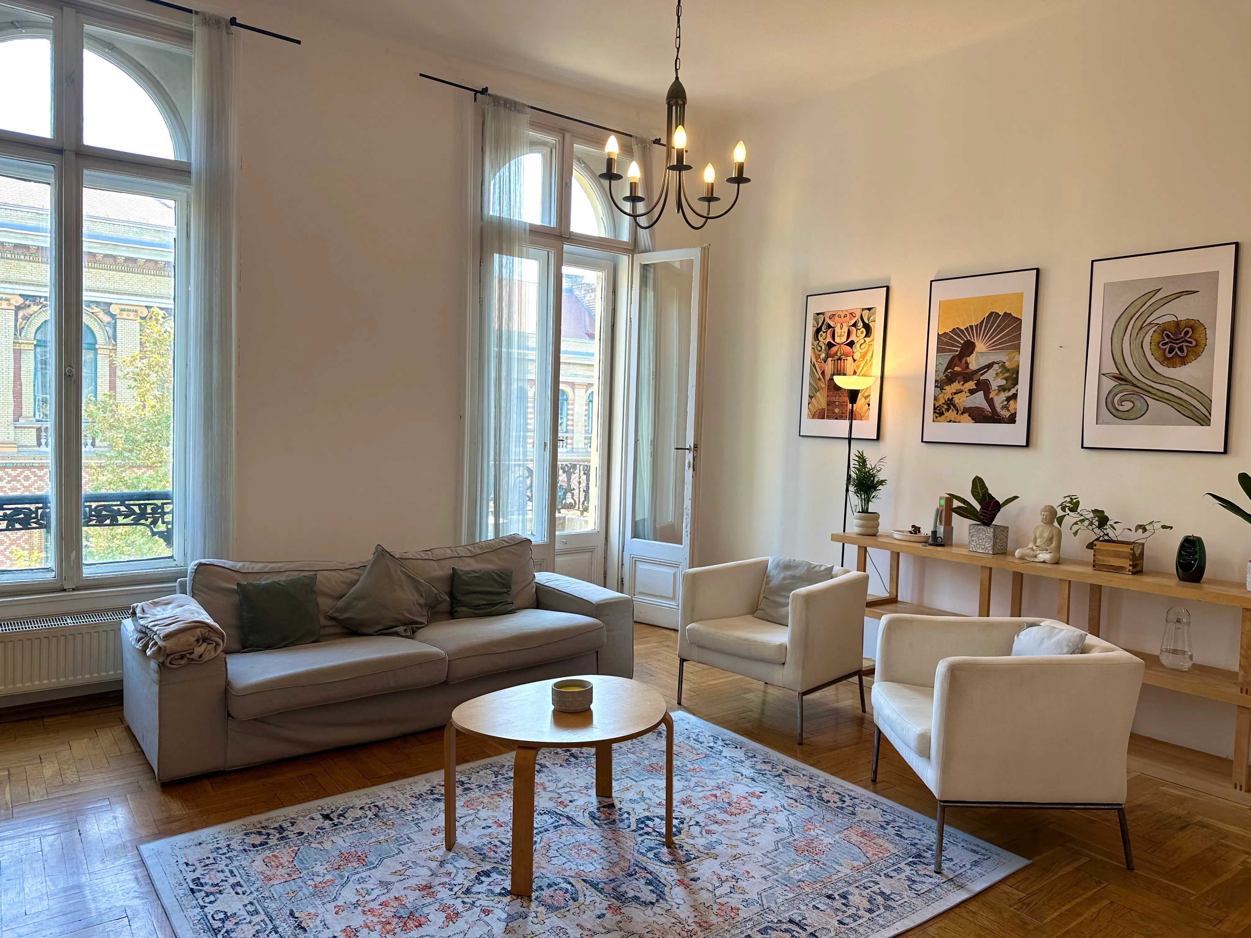 here is a description of the flat: Múzeum körút- Kálvin tér, 3 bedrooms - 2 bathrooms apartment Please (hidden) (hidden) 950 euro rent plus costs, with 2 deposits and a 300 euro signature fee for the contract. Our apartment is a 2 bedrooms + 1 studio or guest room, 108 sqm flat, 5 minutes walk from Kálvin tér and also few steps from Astoria. Ideal location: close to universities (ELTE BTK, BME), just in the middle of downtown. The flat is surrounded by public transport (Metro 2, Metro 3 Tram No. 47-49, bus 9, bus 5, bus 7) The apartment is on the 3rd floor of a classical building, the building doesn’t have an elevator. Rooms are furnished to high standard, the 2 bedrooms have a double bed in each one. The flat consists of the 2 bedrooms + studio room, a kitchen a sunny living room with balcony, 2 bathrooms. The flat is fully equipped; washing machine, Wi-Fi, television, big fridge, oven, microwave and a dishwasher belong to the apartment...