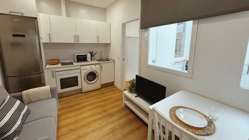 This *practical apartment* with *one bedroom* is ideal for *students* seeking a *functional and cozy space*. The bedroom features a *comfortable bed* , a *spacious wardrobe* , and a *window* that allows *natural light* to enter, creating the perfect environment for rest. The *living-dining area* and *kitchen* are integrated into a *single space* , optimizing every square meter for your comfort. In the living area, you'll find a *cozy sofa* , a *dining table* for *two people* , and a *television* , perfect for relaxing after a day of study. The kitchen is *fully equipped* with everything you need to prepare your meals. It includes an *oven* , *microwave* , *ceramic hob* , and *refrigerator* , offering a *practical* and *efficient space*. The *bathroom* , *modern and functional* , features a *shower tray* , designed to provide *comfort* and *ease of maintenance*. This apartment is the *perfect option* for students looking for a *comfortable* , *well-distributed* place with all the *necessary amenities* for a *pleasant and productive* stay. The charming *neighborhood of* *Delicias* , located in the *Arganzuela* district of Madrid, is an ideal place for students seeking an enriching academic and cultural experience. Situated in a quiet yet well-connected area, this neighborhood offers a perfect balance between study and leisure. *Delicias* , with its cozy streets and relaxed atmosphere, is surrounded by important avenues and points of interest, making it a strategic enclave for student life. This neighborhood hosts several renowned educational institutions, providing students with access to high-quality education. The proximity to the *Escuela Técnica Superior de Ingeniería y Diseño Industrial* , *INNADI* (Institute of Innovation in Design), and the *Clínica Odontológica de la Universidad Europea de Madrid* offers young people the opportunity to train in top-tier academic environments. The metro stops *Arganzuela-Planetario* (line 6) and *Delicias* (line 3) greatly facilitate transportation, quickly connecting students to other areas of the city and their respective universities. This efficient transport network allows for quick and easy access to the *Universidad Complutense de Madrid* and the *Universidad Politécnica de Madrid* , among others. In *Delicias* , students can enjoy a varied cultural and leisure offering. The neighborhood is filled with *cafés* , *restaurants* , and *shops* that create a cozy atmosphere for studying and relaxing. Additionally, places like the *Parque Enrique Tierno Galván* and the *Planetario de Madrid* offer unique spaces for recreation and inspiration. The *nightlife* in *Delicias* , though quieter than in other parts of Madrid, offers enough options for students to relax and socialize after a day of studies. *Bars* and live music venues provide a perfect environment to unwind and enjoy the company of friends. Rental conditions: - Free Check-in time: 9:00h - 18:00h from Monday to Friday. - We offer to pick up service from the airport with a cost of 65€+VAT - The utility costs are as described in the listing. Nevertheless, if the usage of utilities exceeds the amount that the fixed price for utilities covers, it might be that extra costs will have to be paid. Please, be aware that HousingAnywhere is an online booking platform. Therefore exchanging contact details and offering viewings is not possible. If you would like to reserve this accommodation, send me a booking request or a message and I will get back to you as soon as possible....