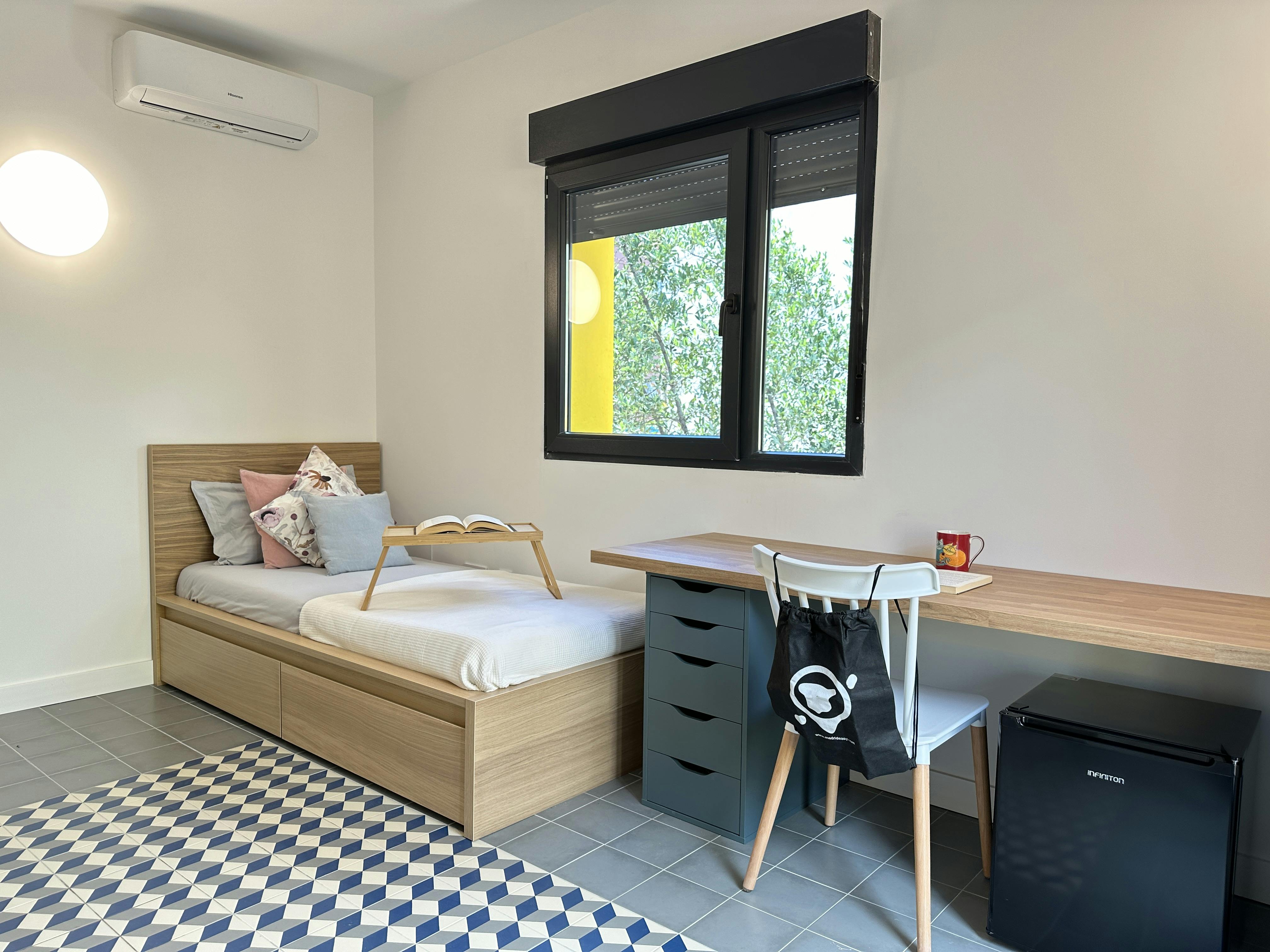 *Simancas* , with its wide avenues and tree-lined streets, is surrounded by shopping areas and essential services, making it a practical place for student life. The proximity of educational institutions such as *IES Simancas* and its easy access to universities like the *Rey Juan Carlos University* and the *Polytechnic University of Madrid* make this neighborhood a strategic point for those seeking quality education. Additionally, this area is known as *MadBit* , the 21st-century urban tech district of Madrid. The *Suances* (line 5), *Simancas* (line 7), and *García Noblejas* (line 7) metro stops quickly connect the neighborhood to the center of Madrid and other key areas of the city, allowing students a comfortable commute to their universities and points of interest. In *Simancas* , students can enjoy a varied cultural and leisure offering. The neighborhood is full of *cafés* , *restaurants* , and local *shops* , creating ideal spaces for both studying and unwinding. Furthermore, its proximity to *El Paraíso Park* and *Quinta de los Molinos Park* provides large green areas perfect for exercising, relaxing, or meeting friends outdoors. Although *nightlife* in *Simancas* is calm and relaxed, it offers enough options for socializing after a day of studies. The nearby *bars* and venues provide a laid-back atmosphere, ideal for unwinding and enjoying life in the company of other students. Rental conditions: - Free Check-in time: 9:00h - 18:00h from Monday to Friday. - We offer to pick up service from the airport with a cost of 65€+VAT - The utility costs are as described in the listing. Nevertheless, if the usage of utilities exceeds the amount that the fixed price for utilities covers, it might be that extra costs will have to be paid. Please, be aware that HousingAnywhere is an online booking platform. Therefore exchanging contact details and offering viewings is not possible. If you would like to reserve this accommodation, send me a booking request or a message and I will get back to you as soon as possible....