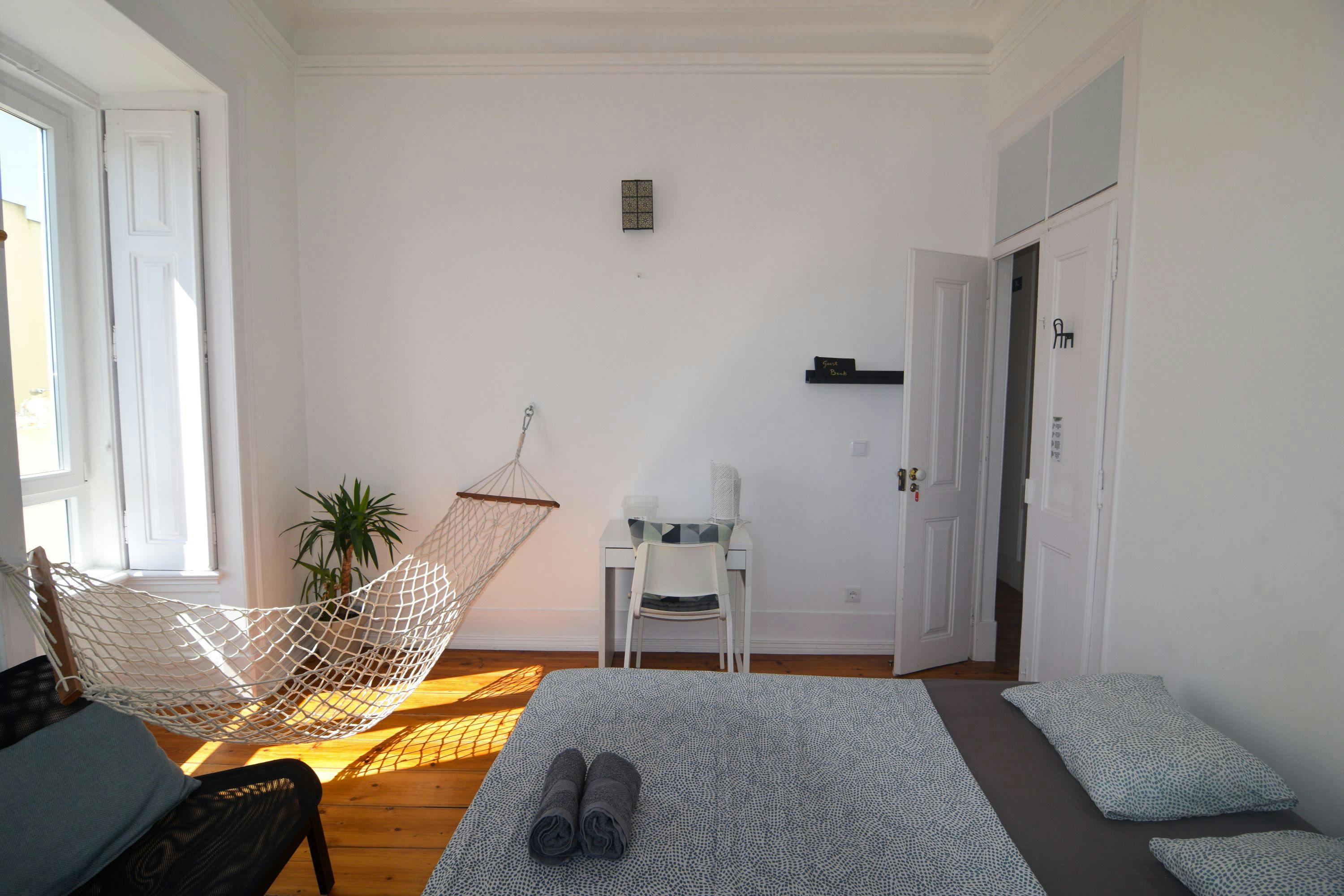 Welcome to the Embassy Suite: Elegant Living in Lisbon Experience the elegance of this chic apartment located in a peaceful neighborhood, offering stunning views of the Port of Lisbon. The area is filled with easily accessible small groceries and cafés, perfect for your daily needs. Accommodations at the Embassy Suite In the Embassy Suite, you'll find five exclusive private rooms, complemented by 2.5 shared bathrooms, a kitchen that boasts an astonishing view of the Tagus River Port, providing an inspiring backdrop for your culinary creations. Room D includes a double bed, a desk with a chair, and a lamp. Moreover, a hammock bed as well as a window with amazing view of Lisbon Sea Port. Apartment features: - Third floor. No elevators. -Residential building, quiet hours from 10 pm till 8 am, calm environment, no parties, no smoking place. - These are non-smoking rooms. If you're seeking a vibrant and culturally rich destination to call home this winter, look no further than Lisbon. Recently recognized as a paradise for remote professionals and freelancers, Lisbon offers the perfect blend of authentic history, rich culture, and modernity, all under its sunniest skies. What better fuel for productivity than the radiant sun itself? We warmly welcome individuals from creative industries and embrace the potential for collaboration. Whether you’re a writer, artist, musician, or any other creative professional, Lisbon’s lively atmosphere will inspire your work and nourish your artistic spirit. Due to the unique architectural features of many Portuguese buildings, central heating can be rare. To keep you warm and comfortable, we provide portable heaters in every bedroom. We also supply fresh linens and towels for your convenience. Common areas will be cleaned twice a week, and change of linens and towels every 15 days. For added flexibility, we’ve implemented a user-friendly self-check-in process, allowing you to arrive at your convenience. Personalized Support at Our Central Desk: Our central desk is dedicated to providing our guests with personal attention during office hours. Our friendly staff is available to assist with any issues and offer the best recommendations for exploring the city. If you need assistance during your stay, don’t hesitate to reach out to us...