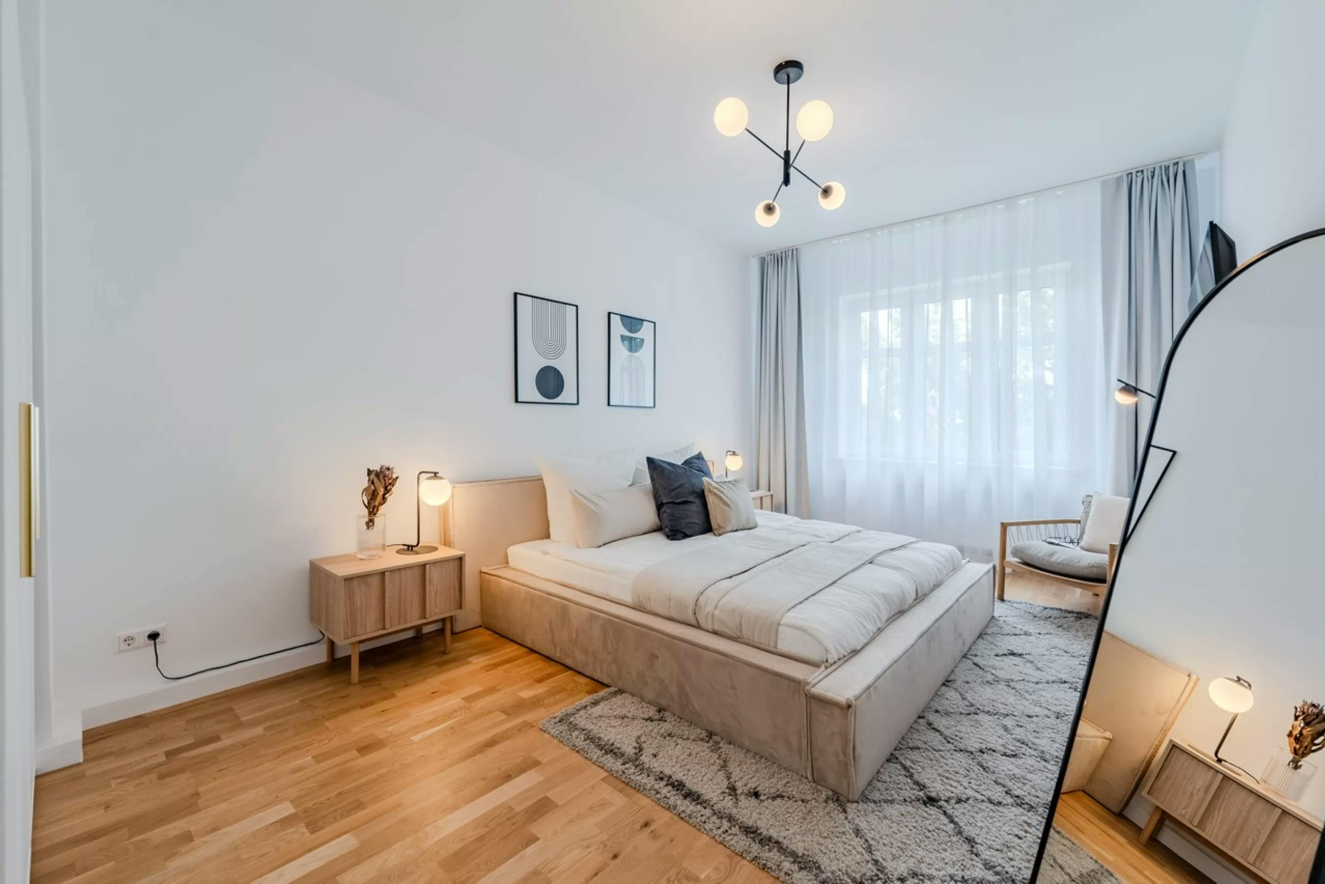 Discover modern living in Neukölln, Berlin, with this newly renovated apartment, ideal for rentals from 3 to 12 months. Spanning 70 sqm, it blends style and functionality, making it perfect for those seeking a temporary yet sophisticated living space. The apartment features an organized entrance hall, two spacious bedrooms, a working room, a kitchen, and a bathroom. One of the bedrooms includes a balcony, ideal for relaxing, while both bedrooms are equipped with brand-new large beds, curtains for privacy, individual sofas, large windows, wardrobes, and TVs. The working room includes a desk ideal for working or studying in privacy, a convertible sofa, and an additional wardrobe. The modern kitchen boasts top-of-the-line appliances and a dining area, while the sleek bathroom, equipped with a shower and window, offers a refreshing experience. The entrance hall serves as a practical area to store personal belongings, keeping the rest of the apartment uncluttered. With its light beige color scheme and wood accents, along with stylish wooden floors, the apartment creates a warm, inviting atmosphere that complements its minimalist design. The heating system ensures comfort throughout all seasons. Located in the vibrant district of Neukölln, this apartment is a serene, elegant haven in one of Berlin's most dynamic areas, suitable for work, study, or leisure. Registration is possible, adding convenience for tenants. VIRTUAL TOUR: https://my.matterport.com/show/?m=QhbTDaAqFJb Surrounding Area: Neukölln is a vibrant and dynamic neighborhood in Berlin, offering excellent public transport connections, including U-Bahn lines U7 and U8, as well as numerous bus routes. There are also convenient parking spaces available nearby. The area is well-served with several supermarkets, making grocery shopping easy. Fitness enthusiasts will appreciate the variety of gyms, while food lovers can explore a wide array of restaurants offering diverse cuisines. For leisure and relaxation, public parks such as Hasenheide provide green spaces for outdoor activities. Neukölln combines urban convenience with a lively community atmosphere, making it an ideal place for new tenants...