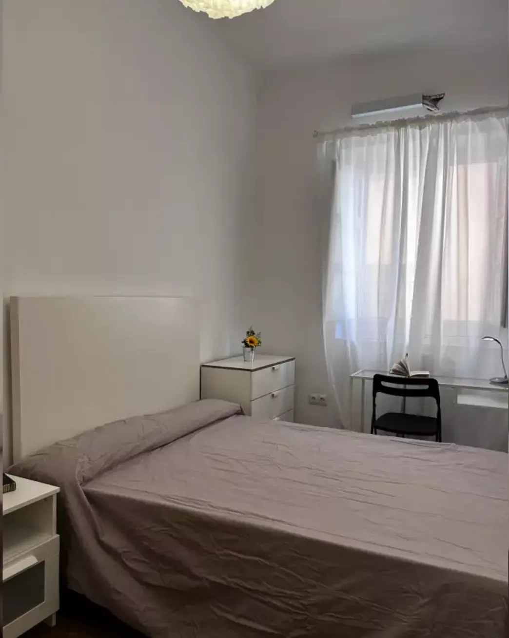 Welcome to the apartment at Cavanilles 23, featuring 6 spacious rooms, each with its own private bathroom for comfort and privacy. This apartment is ideally located near public transportation and parks, making mobility easy and providing green spaces for relaxation. One of the rooms boasts a small terrace, perfect for enjoying the fresh air!! Please be advised of the following: -The apartment has common areas which are shared with the other residents (kitchen, bathrooms, and living areas). -Utilities are included up to €40. -Deposit and Admin fee must be paid before check-in. -No couples allowed. Check-in and Check-out Information: -Check-in: Monday - Thursday (09:30 - 18:00): Free of charge Monday - Thursday (18:30 - 21:30): €80 Friday (09:00 - 14:30): Free of charge Friday (15:00 - 21:30): €80 Weekends & Holidays (10:00 - 21:00): €80 For hours after those established, an extra cost will apply. Check-out: -Before 12:00 (contract ending day). -Check-out cleaning fee: €40 (deducted from deposit). Overnight guests: €15 per night. Parties not allowed: Penalty €200...