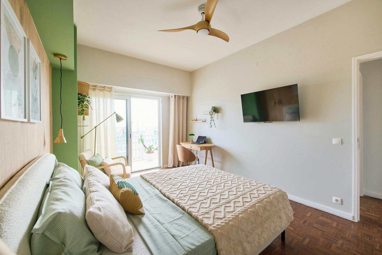 The fresh bedroom is a welcoming and comfortable space, designed to provide residents with a peaceful and restful environment. This room features a cozy double bed (140x190m), a desk, chair and an ample storage for your belongings. Located in Arroios, this home offers easy access to a variety of transports, such as the metro Saldanha (red and yellow line), Arroios (green line) and bus stops. Supermarkets, pharmacies, and universities are conveniently located nearby, making everyday life more convenient. IST (Instituto Superior Técnico) is located within 10 min walking. The house itself is spacious and well equipped, with 9 bedrooms and 3 bathrooms which 1 of them is private. The kitchen has all the necessary appliances and utensils for cooking meals. Please note: - Payment: Must be completed 72 hours before check-in directly to the landlord. This includes the last month’s rent, security deposit, and Administration fee. - Monthly Cleaning Fee: €25. Additional cleaning available upon request. - Utilities: Included up to €25 per tenant. - Bedding: Pillows, duvet, and bed sheets are not provided. - Check-ins: Available Monday to Saturday, from 4:00 PM to 7:30 PM. No check-ins on Sundays or public holidays. - Cleaning of the common areas is provided at least twice a month. A valid identification document is required to complete the lease agreement. -Your check-in will only be authorised 24 hours after the payment has been confirmed in our bank account and the contract has been signed. -Overnight guests may incur a fee - please check this with the landlord...