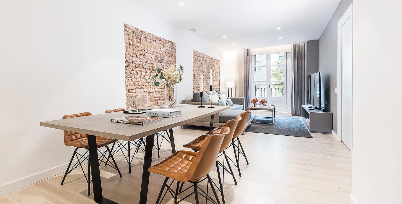 Promos by length of stay in the final price: -Booking + 4 months: 5% discount -Booking + 9 months: 7,5% discount -Booking + 12 months: 10% discount Please contact us to apply for the discount in your booking request! - Utilities included in the price up to 120€ - 180€ depending of the apartment. - Some apartments pets are allow by request. There is an extra charge for pets. Please contact us to know the supplement and availability! -- This apartment is in the Living Rosselló building, a residence that provides a new way of living: your home, your workspace, and your community all in one place. It is located in the heart of La Antiga Esquerra de l'Eixample, one of the most emblematic neighborhoods in central Barcelona, and an exclusive area where you live surrounded by a wide variety of gastronomic and commercial offerings. In addition, just a short walk from this building you will find top sights like the Passeig de Gràcia and Antoni Gaudí's emblematic Casa Batlló. Learn more about your neighborhood. This apartment is in a classic 19th-century building that has been completely renovated but still maintains historical architectural elements such as the Catalan vaulted ceilings with wooden beams and oak wood floors. Inside the apartment itself, there is a contemporary aesthetic and an open-concept floor plan that balances style with comfort and maximizes space. When living here you will also enjoy a quiet ambiance as this apartment is interior facing. In the Living Rosselló building, you can enjoy expertly curated common areas where you will feel a sense of belonging among like-minded professionals. This building stands out for its traditional facade and for having a private 350 m2 garden with seating for relaxing, dining, or working. This space is an oasis in the heart of Barcelona and is exclusively available for our residents to enjoy. On the ground floor, there are various shared spaces such as a meeting room and a coworking area which are perfect for working from home, and a lounge where you can relax after a long day. There is also a gym, equipped with Technogym equipment to accommodate any fitness routine. In the outside area, you will find a spacious garden which comes fully furnished so you can comfortably enjoy a breath of fresh air. Points of Interest: Transportation: The metro stations of Provença (220 m) and Passeig de Gràcia (200 m) with direct lines to the heart of the city, are within a few minutes walk. The building is also just a short walk away from Barcelona’s main avenues, Passeig de Gràcia (550 m) and Avenida Diagonal (450 m). Culture: In this neighborhood, the streets are lined with buildings featuring the classical architecture that is emblematic of Barcelona's Eixample. Nearby are La Pedrera (also known as Casa Milá) and Casa Batlló by the world-renowned architect Antoni Gaudí. The gardens of Palau Robert are also in close proximity to the building; serving as an ideal escape from the hustle of the city. Shopping / Dining: You can find a wide variety of fresh produce and cozy tapas stalls in the Mercado del Ninot (600 m). The surrounding area also offers a diverse array of dining options, such as on Calle de Enrique Granados (240 m) which is lined with restaurants and bars. There is also no shortage of boutiques, bookstores, and supermarkets in this neighborhood. Utilities Relax - We take care of all bills, including broadband, water, gas (up to 100€) and electricity (up to 100€) , so you don’t have to. 24/7 Service Our team is on-call 24/7 for whatever you need to guarantee you complete peace of mind. Cleaning services Weekly cleaning service included. Verify the type of services. The rent payment includes the applicable VAT in each case. General Info The apartment is 125 m2 and is on the 1st floor with an interior view. Living / Dining Area This room comes furnished with a two-seater sofa, coffee table, two armchairs, a cabinet with a 65” Smart TV, and a dining table that comfortably seats 6 people. Kitchen Fully equipped with kitchenware and state-of-the-art appliances, this space is ready for you to enjoy preparing any meal. Additionally, there is a breakfast bar to sit at and enjoy a cup of coffee. Bedrooms There are 2 bedrooms that each come with nightstands, built-in closets, and a large glass door which opens to a balconette. The primary bedroom also features a king-sized bed (1.80 x 2.00 m), a 55” Smart TV, and an ensuite bathroom that is equipped with a shower. There is a guest bathroom, also equipped with a shower, and a second bedroom which has been furnished with a queen-sized bed (1.50 x 2.00 m). Bathroom This apartment has two bathrooms, one of them en suite, all of them are fully equipped....