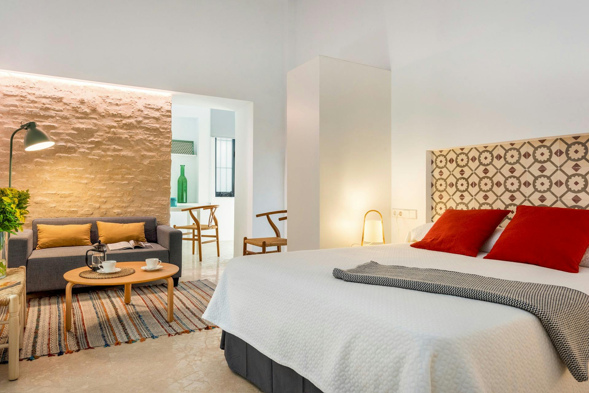 (hidden) Santa Teresa is located in a protected historic building in the iconic Plaza de Santa Cruz, with access from Santa Teresa Street. The complete renovation carried out in 2018 carefully preserved all possible original architectural elements of this medieval-style historic house, creating a unique space where guests can enjoy absolute tranquility along with all modern comforts. This charming studio is perfect for enjoying a comfortable stay in a prime location. It features a spacious living area with a sofa and TV next to a 1.50 by 1.90 meter bed, a full bathroom with shower, and a separate kitchen fully equipped with everything you need. The building’s renovation preserved original architectural and historic elements, such as the exposed brick walls and windows surrounding the studio, giving it unique elegance and character. The setting is unbeatable: Santa Teresa Street and Santa Cruz Square are two of Seville’s most beautiful places, full of history and tradition. Just steps away, you’ll find small traditional bars serving the best tapas, artisanal shops, and countless charming spots to explore. The Cathedral, Alcázar, and Giralda are only minutes on foot. Additionally, the public parking on Cano y Cueto Street is just steps away, and direct connections to Santa Justa train station and the airport are only minutes away, making transportation during your stay easy and hassle-free. The booking of each (hidden) accommodation includes the offer of extra experiences or activities to improve your experience, which are managed by external providers, who will inform you by e-mail or (hidden), and you can contract or refuse them. For more information about the management of experiences and extra activities of the accommodations, please visit our Privacy Policy on our official website. ** For monthly stays, water and electricity supplies will be included up to a maximum of € 100 per month. If the expenses are higher, the guest will have to pay the difference. The corresponding invoice will be sent by the accommodation to the guest to verify the expenses** During your stay, the access to the property is limited exclusively to the number of individuals specified at the booking process. Consequently, entry to the property is strictly prohibited for persons not registered as guests. Failure to adhere to this rule will result in an additional charge amounting to 50% of the total cost of the stay as a penalty, or alternatively, immediate expulsion from the accommodation...