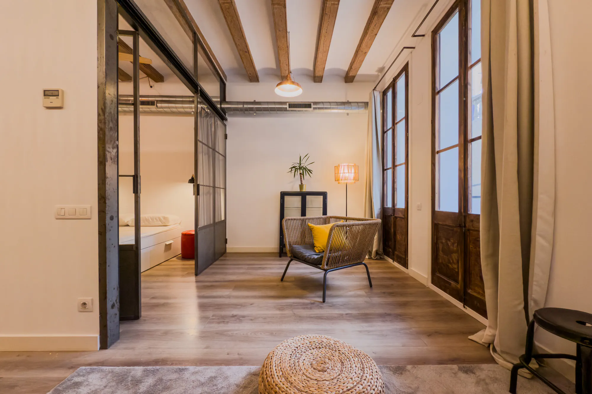 SEASONAL RENTAL FOR LEISURE OR HOLIDAY PURPOSES ONLY – MIN. 32 DAYS MAX. 11 MONTHS This apartment is exclusively available for temporary stays related to leisure, holidays, recreational or cultural activities such as congresses, fairs or festivals, as well as short-term work or study stays. The minimum stay is 32 days and the maximum is 11 months. You will need to provide ID/passport, proof of solvency (contract, payslips, bank statement), and declare that you are staying for leisure and tourism purposes. This modern apartment stands out for its high-quality finishes and striking industrial design, combining style and comfort in every detail. The property features two spacious double bedrooms, each with its own en-suite bathroom, making it an ideal option for couples or for sharing with friends while maintaining privacy. The fully equipped, contemporary kitchen includes a fridge, dishwasher, and ample built-in storage, offering both functionality and a sleek aesthetic. The living area is bright and generously sized, benefiting from abundant natural light that creates a warm and inviting atmosphere. An interior balcony adds a pleasant outdoor feel within the comfort of the home. Located in the vibrant neighbourhood of El Raval, the apartment enjoys a prime central location surrounded by museums, theatres, and cultural hotspots. It is just a short 10-minute walk from Plaça Catalunya and the Port of Barcelona, offering excellent connectivity and convenience. The property is ideally positioned between Sant Antoni (L2) and Liceu (L3) metro stations, ensuring easy access to all areas of the city. With its high-quality furnishings and thoughtfully designed spaces, this apartment offers a comfortable and stylish urban living experience. Rental conditions: -Monthly rent= 1580€ -Utilities: 150€/month -Internet: 50€/month -Agency fee: one month's rent + VAT. -Final cleaning: one time payment 190€ (VAT included) DEPOSIT: -RENTALS FROM 1 TO 5 MONTHS: YOU HAVE TO PAY THE EQUIVALENT OF ONE AND A HALF MONTHS' RENT. -RENTALS FROM 6 TO 11 MONTHS: YOU HAVE TO PAY THE EQUIVALENT OF TWO MONTHS' RENT. After the reservation is confirmed, you will receive a separate email with the next steps to complete the booking process and organize the check in with the agency. Check ins are possible during the week from Monday to Friday from 09:30am until 17:30pm or after office hours for an extra fee of 85€ + 21% VAT. About AK-BCN AK-BCN is a dynamic real estate management company with over 20 years of experience and more than 100 properties under management in Barcelona. We specialize in offering advanced solutions for both owners and tenants. Pioneers in Co-Living projects, property improvements and the search for customized solutions according to our clients' needs, we work to ensure that all client-tenant relationships are developed with the highest standard of quality and service....