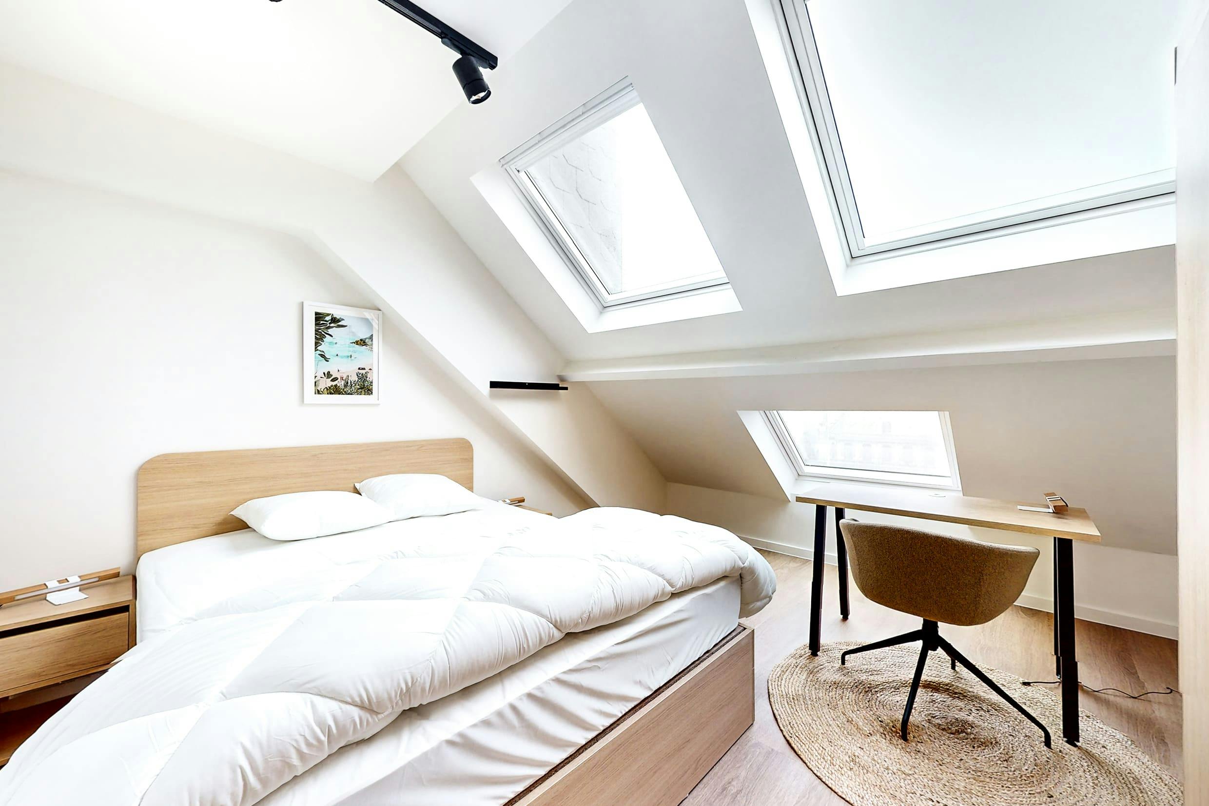 Discover your modern urban retreat at Masubi, a charming two-room private apartment nestled in the heart of Brussels. Perfectly designed for two, this 71m2 fully furnished residence offers comfort, style, and convenience, making it an ideal (hidden), professionals, or couples seeking an inspiring city base. Located on the 1st floor of a peaceful building on Quai à la Houille, Masubi boasts a spacious living area furnished with a cozy sofa, TV, and a dining space—perfect for relaxing or entertaining guests. The fully equipped kitchen features modern amenities including an oven, microwave, induction hob, fridge, and dishwasher, enabling you to prepare delicious meals with ease. The bedroom is a tranquil space equipped with a comfortable 160x200 bed, a desk for working or studying, and ample storage. Step outside onto your private 9m2 terrace, complete with outdoor furniture, where you can enjoy sunny days and unwind in privacy. The apartment’s contemporary bathroom includes a shower, washbasin, and toilet, while high-speed internet ensures you stay connected at all times. Additional amenities such as shared laundry facilities, heating, and stylish décor enhance your living experience. Situated just a few minutes’ walk from Sainte-Catherine metro station, you have excellent access to Brussels’ lively districts, cultural sites, and business hubs like Tour & Taxis and the European Quarter. Within walking distance are local bakeries, supermarkets, parks, gyms, cinemas, and museums, providing a vibrant neighborhood atmosphere. Whether you’re settling in for study, work, or leisure, Masubi offers a welcoming environment that combines comfort, modernity, and prime location. Welcome to (hidden)—welcome home...