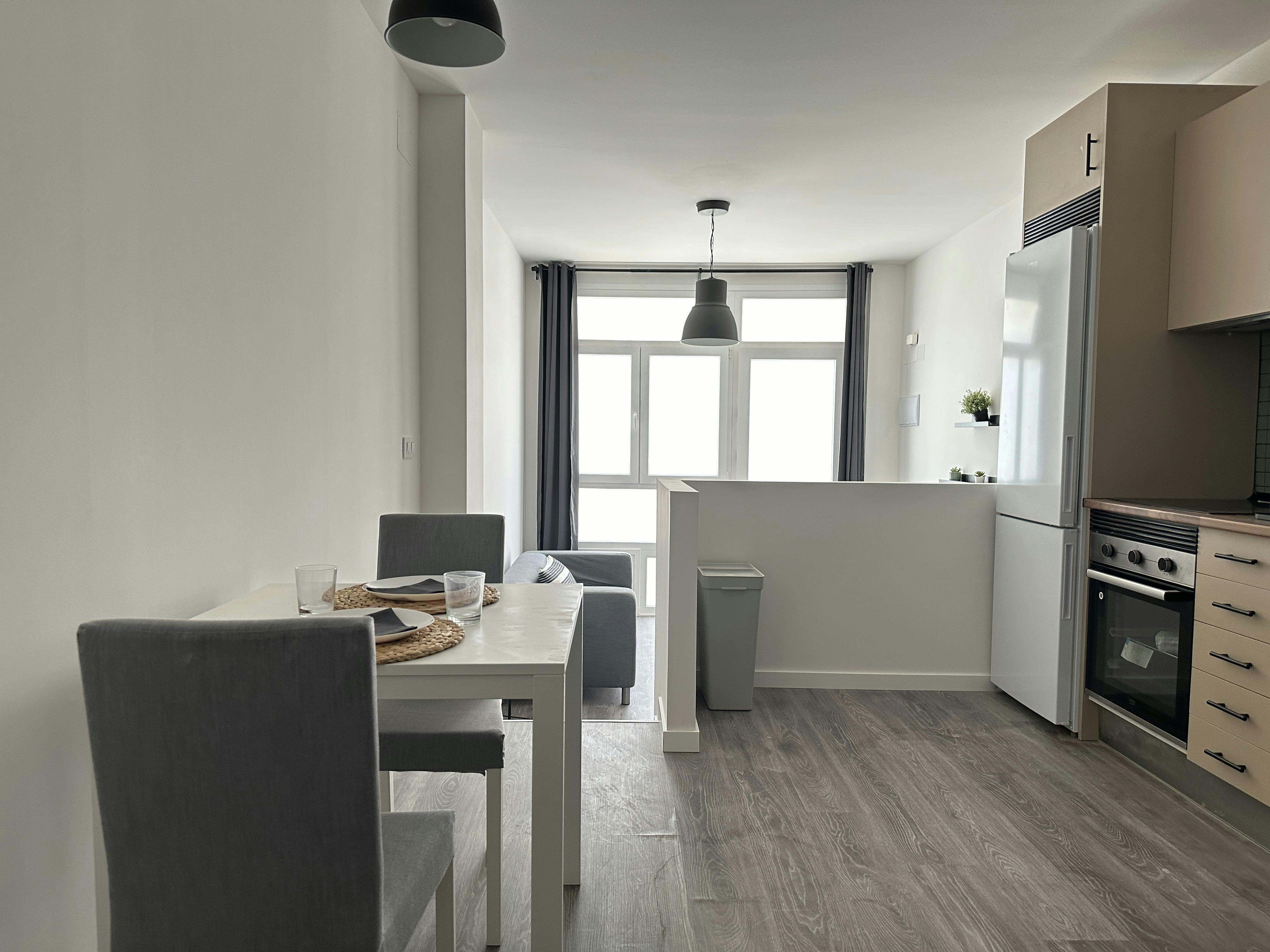 This *modern studio* features a unique layout where the *kitchen and bedroom area* is elevated by a few *steps* and separated from the rest of the space by a *half-wall* , creating visual and functional distinction. The lower area contains the *living room* , with a *comfortable sofa* in neutral tones and a *contemporary coffee table*. In front of the sofa, a *flat-screen TV* is mounted on the wall, along with *floating shelves* for decorative storage. The *kitchen* , located in the elevated section, is equipped with a *fridge* , *ceramic hob* , *oven* , *microwave* , and *washing machine*. Next to it, there is a *dining table for two*. The *bedroom* , also in the elevated area, includes a *double bed* , *bedside tables* , and two *large wardrobes*. The *bathroom* features a *large walk-in shower* , in keeping with the studio’s *modern and functional design*. Lucero , a charming neighborhood in the Latina district of Madrid, is distinguished by its unique blend of old and modern buildings, *creating a peaceful and appealing residential environment for students.* Accessibility is a standout feature, thanks to the efficient public transportation system, especially the metro, with *the nearest station being Lucero (Line 6).* While Lucero doesn't host universities within its core, its strategic location allows easy access to prominent educational institutions in Madrid via the metro, such as the Complutense University of Madrid in Moncloa, the Polytechnic University of Madrid with its various campuses, ESIC University , and Rey Juan Carlos University. In addition to business schools like IE Business School and EAE Business School , among others. Living in Lucero , you'll find numerous *shops, restaurants, and local parks, such as the Olivar Park.* And within a few minutes by public transport, you can enjoy the *Madrid Amusement Park.* Rental conditions: - Free Check-in time: 9:00h - 18:00h from Monday to Friday. - We offer to pick up service from the airport with a cost of 65€+VAT - The utility costs are as described in the listing. Nevertheless, if the usage of utilities exceeds the amount that the fixed price for utilities covers, it might be that extra costs will have to be paid. Please, be aware that HousingAnywhere is an online booking platform. Therefore exchanging contact details and offering viewings is not possible. If you would like to reserve this accommodation, send me a booking request or a message and I will get back to you as soon as possible....