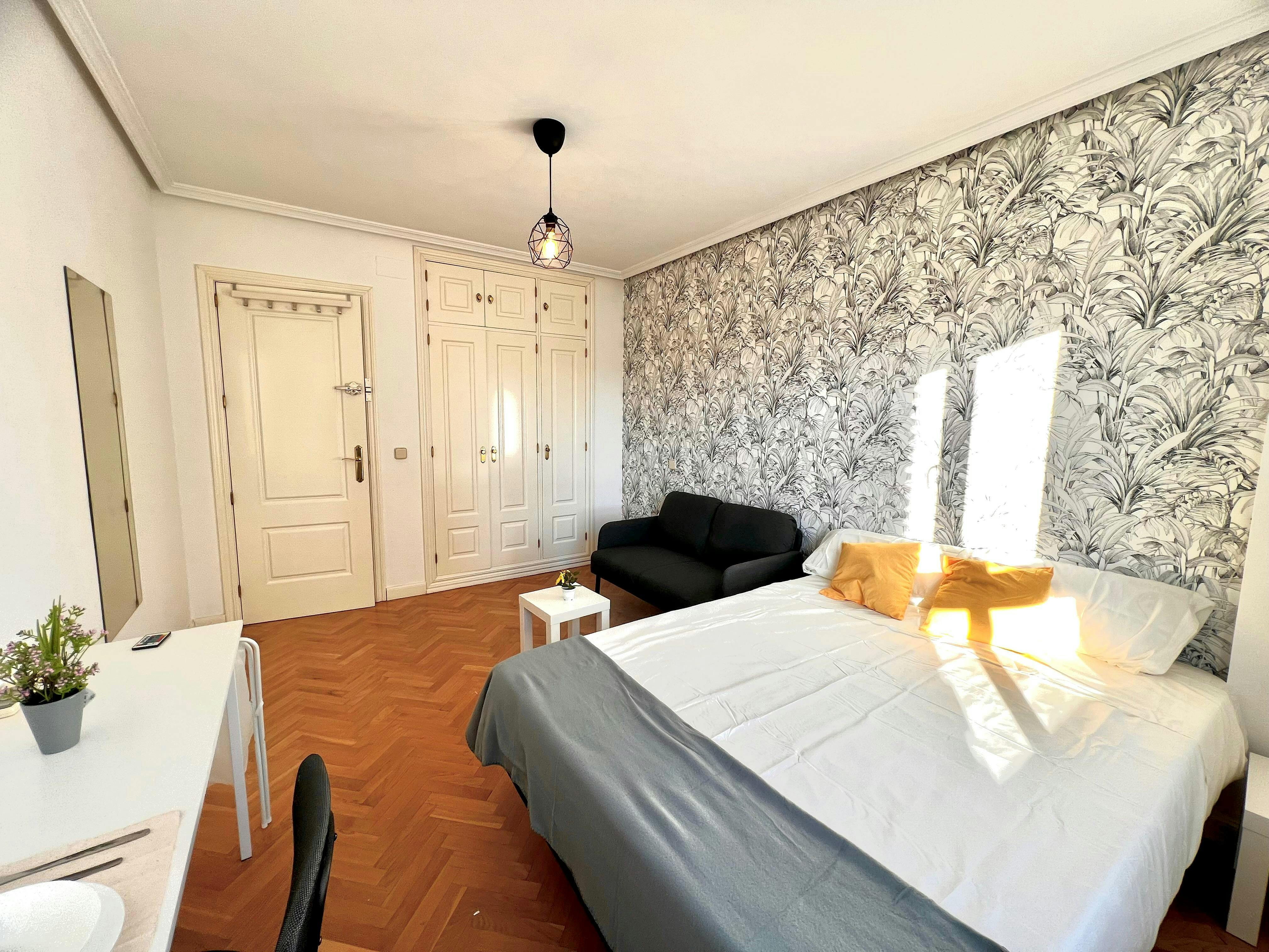 EXPENSES INCLUDED! Rent this luxurious room of more than 20m2 exterior with all the amenities you need. With built-in closets, a huge desk, sofa, mirror and air conditioning. The double bed guarantees you a restful rest and the led lights will make you enjoy a warm night environment. The house, NEWLY REFURBISHED, consists of 6 bedrooms, large kitchen and 3 spacious bathrooms. The price includes: all utilities (electricity, water and gas) + wifi and weekly cleaning of the apartment. Couples: 770 euros. And the best of all is that you have the possibility to move to any of the 400 rooms available in Madrid, Toledo and Malaga. Don't miss this unique opportunity...