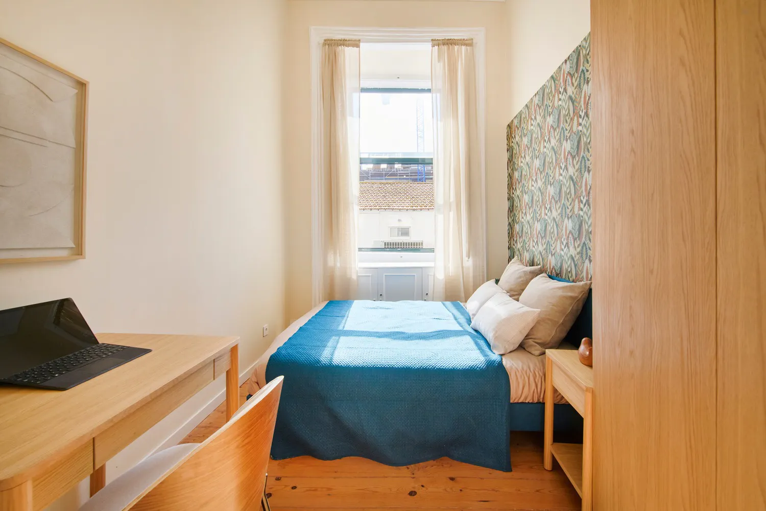 The fresh room with a welcoming and comfortable space, designed to provide residents with a peaceful and cozy environment. Decorated with a cozy bed and offers ample storage space for personal belongings. Located in Santos, this home offers easy access to a variety of transports, such as the Santos train and metro station, buses and tram stops. Pharmacies, supermarkets are conveniently located nearby, making everyday life more convenient. Close to tourist attractions such as the historic center, museums and clubs. Perfect for students at IADE (10 min walking), Universidade Lusíadas and Belas Artes da Faculdade de Lisboa. The house itself is spacious and well equipped, with 8 bedrooms and 3 bathrooms. The kitchen has all the necessary appliances and utensils for cooking meals. Please note: - Payment: Must be completed 72 hours before check-in directly to the landlord. This includes the last month’s rent, security deposit, and Administration fee. - Monthly Cleaning Fee: €25. Additional cleaning available upon request. - Utilities: Included up to €25 per tenant. - Bedding: Pillows, duvet, and bed sheets are not provided. - Check-ins: Available Monday to Saturday, from 4:00 PM to 7:30 PM. No check-ins on Sundays or public holidays. - Cleaning of the common areas is provided at least twice a month. A valid identification document is required to complete the lease agreement. -Your check-in will only be authorised 24 hours after the payment has been confirmed in our bank account and the contract has been signed. -Overnight guests may incur a fee - please check this with the landlord...