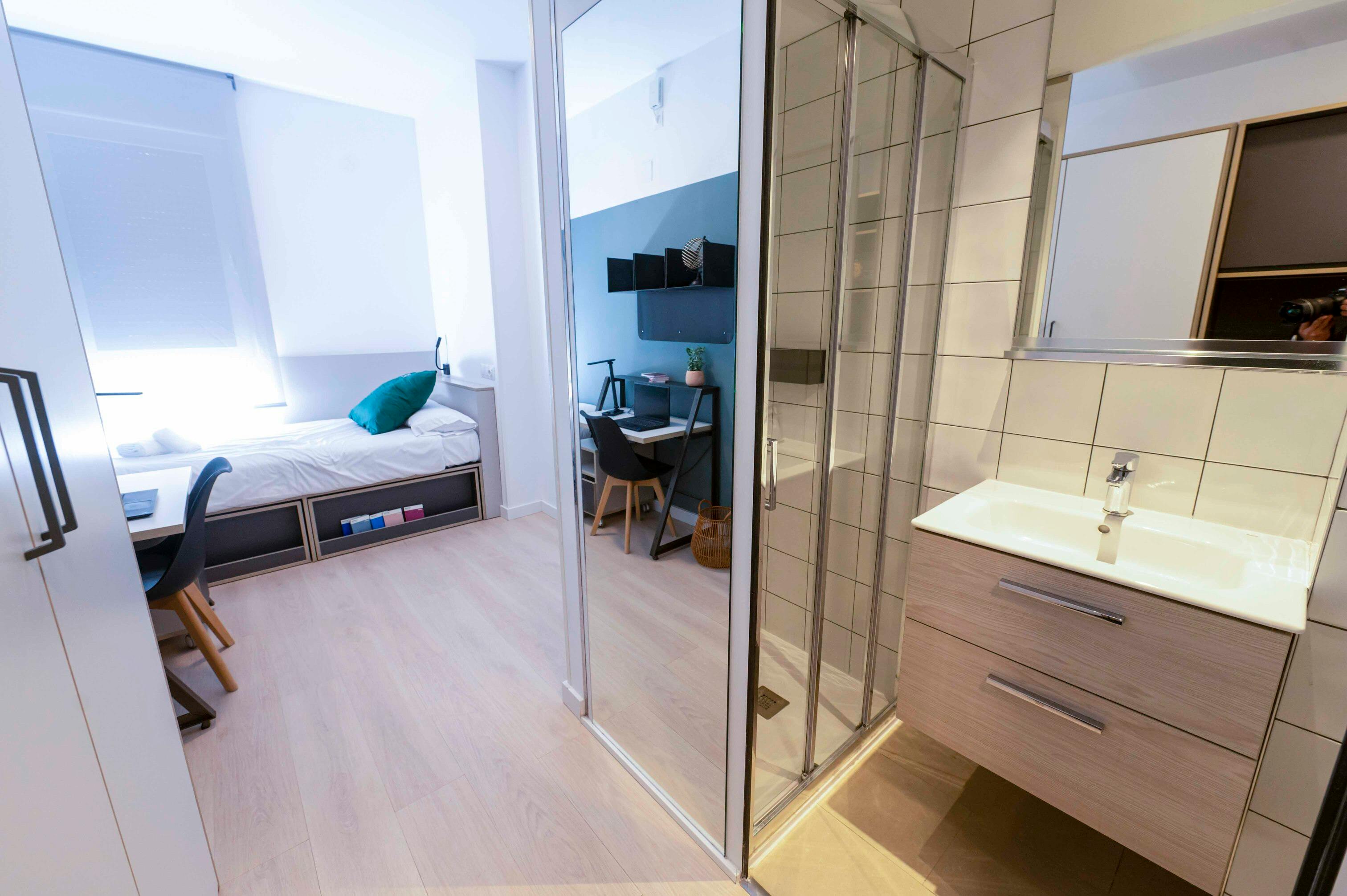 🌟PROMO FLASH: No administrative fee !! - Booking with max move out date August 26🌟 (Bookings for new course from September: Administration fee is 220€) 🔸Cleaning room and change of sheets included in the price. It is weekly! 💢 Single room with private bathroom and with private kitchenette with no stoves 💢 Type of bed: 105 x190 🏡Building, common areas and type of units In our residence you will find a place where you’ll have everything you need for university life. This residence offers single , double and triple rooms. We have different common areas that won ́t leave you indifferent: many study rooms, a big lunchroom, TV room, poll, football and spaces for relaxing after the university with friends. You will also have the possibility of enjoying 3 terraces with ping pong and solarium. Also don ́t forget the fully equipped gym and the laundry room. We have a 24/7 Security service with cameras to make you feel safe. Also, you will have the freedom to go and back from/to the accommodation anytime. In your room, we clean and change your bed sheets weekly. In addition, you will have the freedom to come and go whenever you want from the residence. In your room, we clean and change your bed sheets weekly. ⭐Restaurant We offer you a delicious and varied gastronomic proposal, designed especially for you. With a daily menu where you can choose from a variety of homemade and nutritious dishes, made with fresh and seasonal ingredients. If you are vegetarian, vegan or have any kind of allergy or intolerance, we will adapt the menu to your needs. You can choose between Half board and Full board. 📍Location and Neighborhood You will find everything you need for your day-to-day as supermarkets, gym, pharmacies and hospitals. We are in the middle of the three university campus: 15 minutes from Fuentenueva and Aydanamar, and 20 minutes of Cartuja by bus. We are a few minutes away from the “Plaza de Toros” where you will eat delicious tapas with your friends. Few minutes walking from the “Plaza de Toros”, you will arrive to “Puerta Elvira” and the Albayzin area, a perfect place to get lost walking around many little streets and travel back in time to the Nasrid world. You can also enjoy one of the best sunsets on the “Mirador de San Nicolas” or visit the Alhambra and the “Jardines el Generalife”. 💢💢💢 🔸After the reservation is completed, you will be required to pay the deposit and other fees through our secure payment system...
