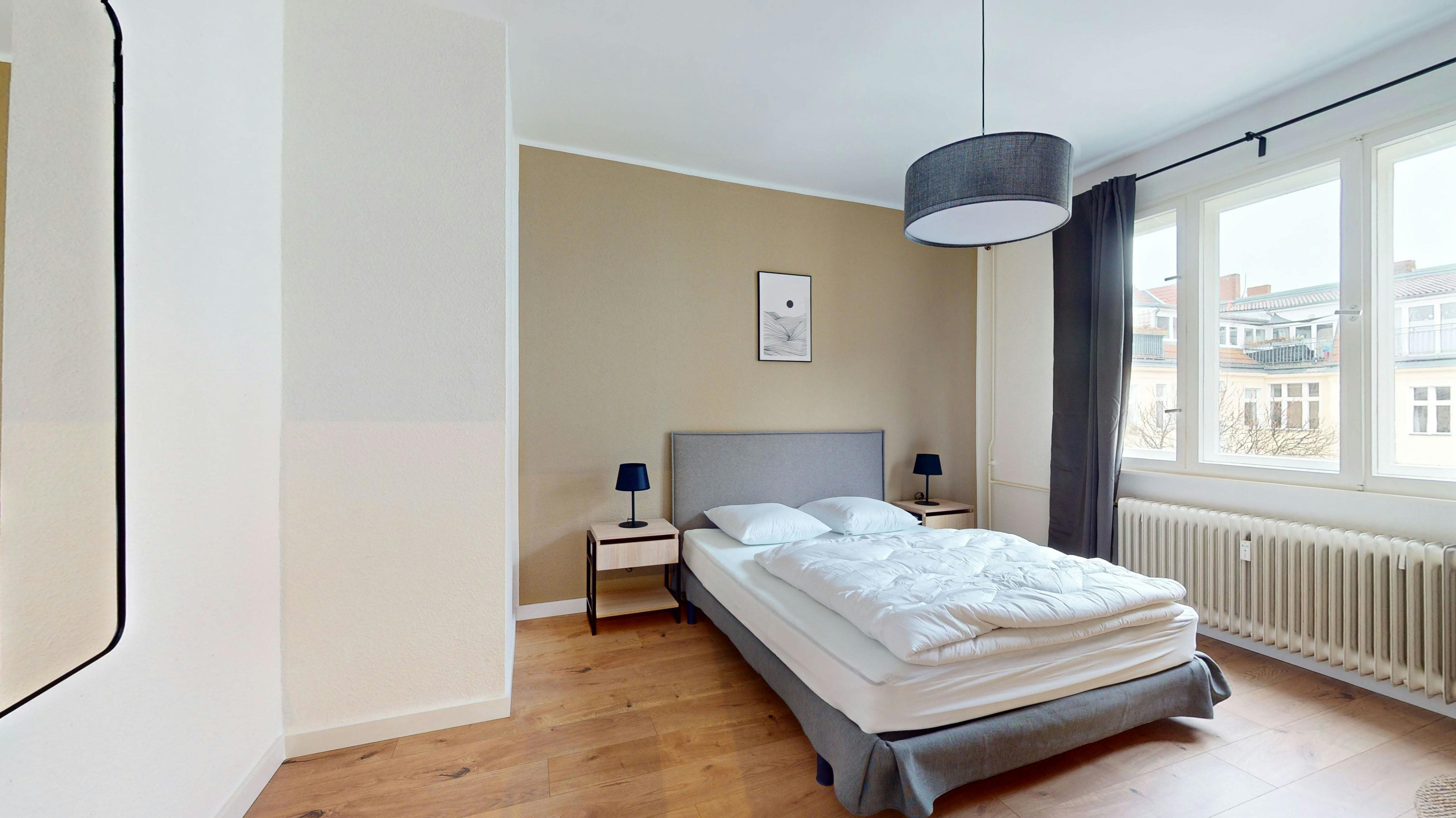Discover the perfect urban retreat in the vibrant district of Schöneberg with this charming Private Two-room Apartment at Berlin Belziger 1. Covering 57 m2, this fully furnished residence offers comfortable living spaces tailored for individuals or couples seeking a stylish and functional home in Berlin. Step inside to find a bright and welcoming environment, where natural light floods the living room, creating a warm and cozy atmosphere. The spacious living area is ideal for relaxing or entertaining guests, complemented by a modern, fully equipped kitchen that invites you to prepare delicious meals. Adjacent is a dedicated dining space, perfect for enjoying meals or casual gatherings. The apartment’s private bathroom ensures privacy and convenience, adding to the overall comfort. Designed with modern amenities and contemporary decor, Berlin Belziger 1 provides everything needed for a seamless living experience. The furnishings include a comfortable double bed, sofa, desk, high-speed internet, TV, and essential kitchenware, making it move-in ready. The apartment also features quality linens, premium bedding, and thoughtful touches that enhance your daily life. Located just a short walk from the U-Bahn Bülowstraße (U2) station, this residence offers excellent connectivity to Berlin’s city center and attractions. The neighborhood boasts a lively atmosphere with nearby shops, cafes, and eateries, while parks and gyms, such as Heinrich-Lassen Park and EMS Gym Fitbox Berlin JFK Square, are within easy reach. Public transportation options like bus and train stations further simplify your travel around the city. Experience comfort, convenience, and style at Berlin Belziger 1—a perfect place to call home in Berlin’s dynamic Schöneberg district...