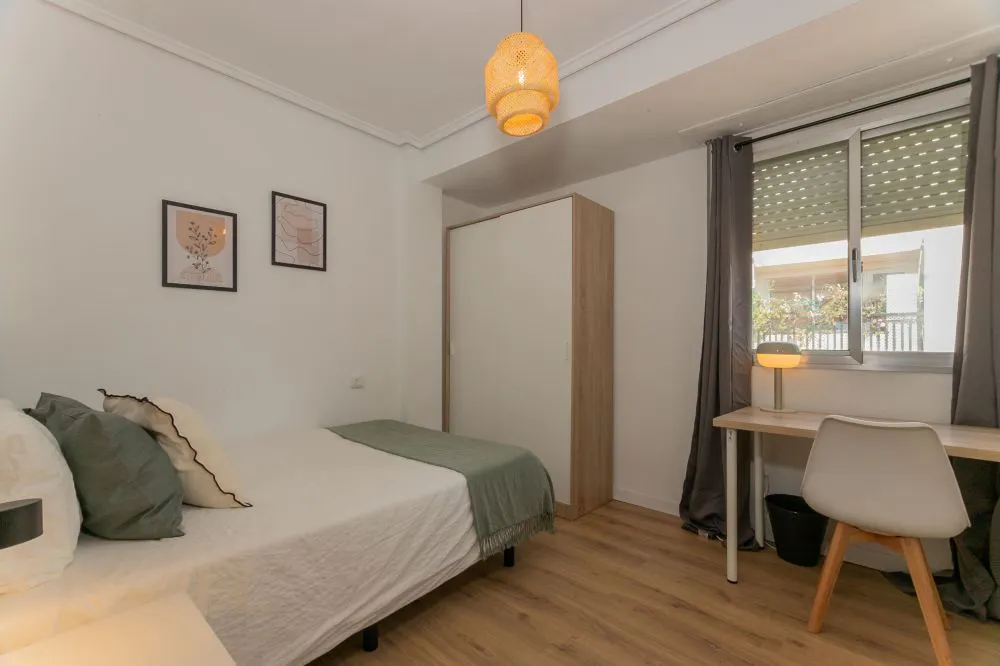 Lovely apartment in Benimaclet Charming flat in Vila del Muro street, Valencia. This spacious flat has bright rooms, a fully equipped kitchen with microwave, fridge, oven, washing machine and dining area. It has two bathrooms: one with a toilet and the other with a full bathroom including a renovated bathtub, and a cosy living room with TV, ideal for sharing moments with flatmates. Perfect for international students and young professionals, located in the vibrant neighborhood of Benimaclet, known for its cosmopolitan atmosphere and variety of services and activities, this is a unique opportunity to enjoy life in Valencia! This charming flat is located in one of Valencia's most chic neighborhoods, immersed in a dynamic and lively urban environment. Strategically located between two of the city's main thoroughfares, the Ronda Nord and Avenida Primado Reig, and a short distance from the center of Valencia, this neighborhood is particularly attractive to those associated with the prestigious universities in the area, making it a popular enclave for students. The streets are brimming with youth, with a constant presence of people walking, chatting animatedly and enjoying the diverse and lively terraces offered by a wide variety of bars and cafés. The flat enjoys excellent accessibility to public transport, being located in close proximity to various metro stations and bus stops on Calle Vila del Muro in Valencia. Just a short walk away is the Machado metro stop, on line *3* and *9* , providing quick access to several key areas of the city. This station is a *10 minute* walk from the flat. Also within walking distance is the bus stop with several bus lines at your disposal, including line *12* , which connects you to different strategic points of the city, as well as line *70* which offers a direct route to the historic center and the beach. An additional advantage is the ease of use of the *Valenbisi* system, which provides a healthy and sustainable option for cycling around Valencia. With an affordable annual subscription, approximately *€30* , you can access a network of more than 275 bike stations spread across the city. By simply using your Valenbisi user card, you can take a bike from one of the available stations, explore the city and then, when you arrive at your destination, park it at any nearby station, guaranteeing agile and practical mobility at all times. *Plaza de Benimaclet:* This is the heart of the neighbourhood, a charming meeting point where locals and visitors come together. Here you will find bars, terraces and it is often the setting for cultural events and local festivities. *Church of San Miguel and San Sebastián:* A historic temple dating from the 17th century, renowned for its architecture and history. It is a place of cultural and religious interest in the neighbourhood. *Benimaclet Market:* A traditional market where you can find a wide variety of fresh produce: fruit, vegetables, fish and local products. It is a point of reference for residents and visitors. *Benicalap Park:* Although technically located in the neighbouring district of Benicalap, this park is very close to Benimaclet and is a large green space, perfect for walking, playing sports or relaxing outdoors. *Cultural spaces and alternative venues:* The neighborhood has a rich cultural life, with spaces such as La Casa de los Caracoles, which organizes cultural events, concerts and exhibitions. - Don't smoke - Pets are not allowed - Parties are forbidden - Take out the trash daily - Short-term visits are allowed *Spacious double room in Valencia* Spacious double room in the Vila del muro located in the Benimaclet neighborhood. It is equipped with a double bed of 135x190 cm, a large wardrobe, a desk with a lamp and a chair and a door lock. It is the perfect opportunity for international students and young workers to live in an excellent location. *Bed linen is not included, only a mattress cover is provided. Please keep in mind that the amount requested in the "other additional costs" field refers to tenant assistance coverage....