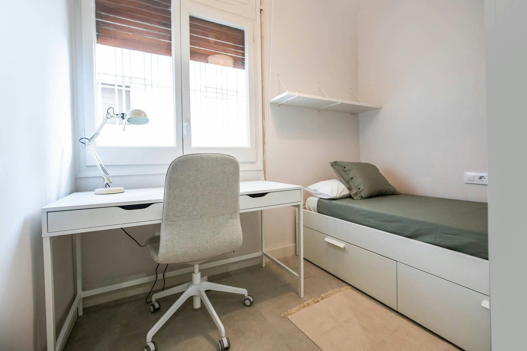 No couples permitted. Agency fees depend on number of months Comfortable 10m2 bedroom for rent, situated in the Sarrià-Sant Gervasi neighborhood. This fully furnished room includes a comfortable single bed, wardrobe, desk for work, and a personal key for privacy. This space is perfect for tranquility and efficiency, owing to its calm atmosphere, and provides all the necessities for a cozy lifestyle in the city. The rent covers high-speed Wi-Fi and a monthly cleaning service. It’s an ideal option for individuals seeking comfort and ease in a vibrant, well-linked neighborhood. The communal areas include a comfortable lounge equipped with a TV, ideal for spending time with your housemates! Moreover, the kitchen is fully equipped with all essential appliances such as a dishwasher, cooktop, oven, refrigerator, and microwave. The apartment is equipped with a total of four bedrooms and two bathrooms...