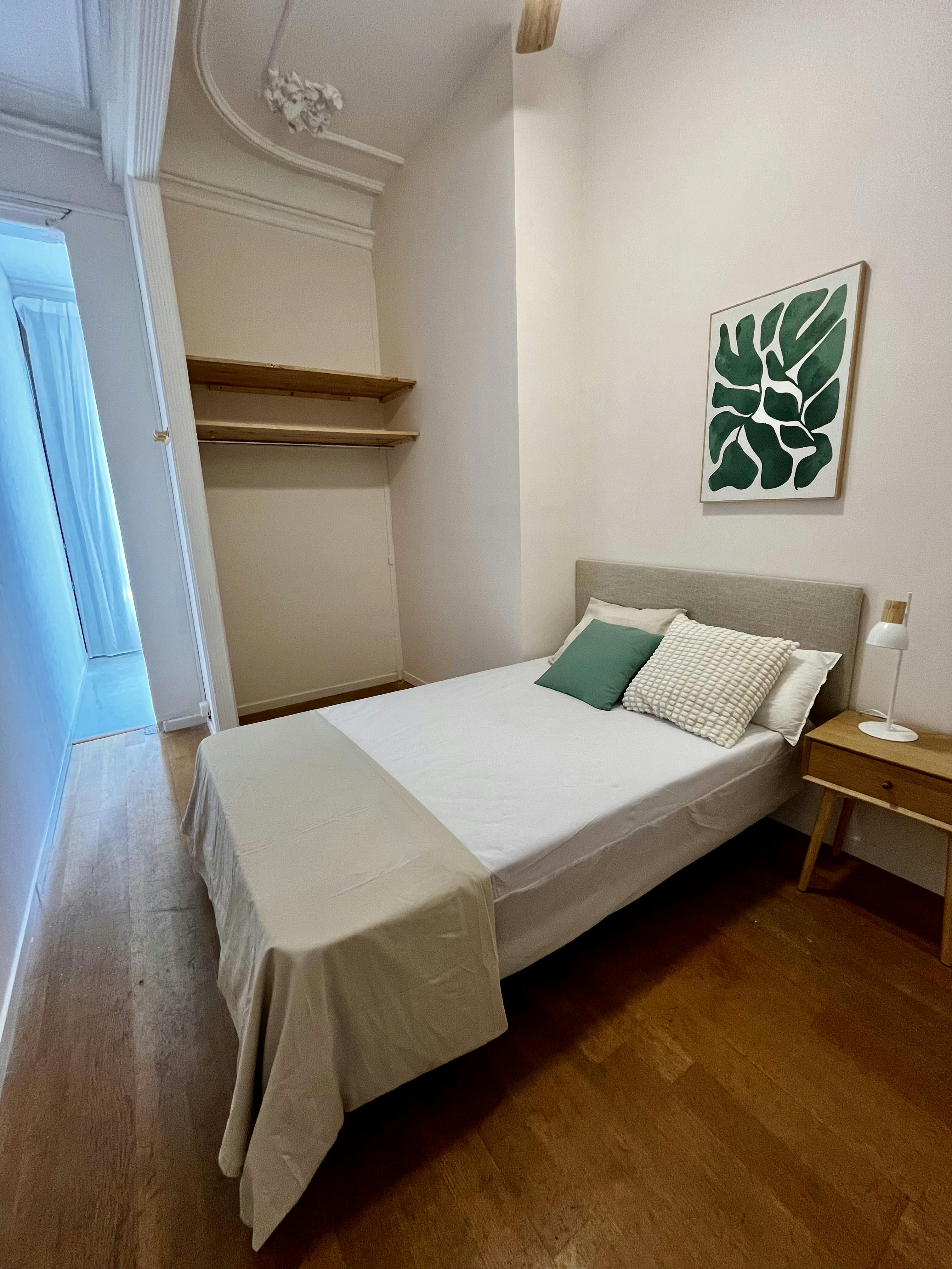 Premium Room No. 1 in the center of Barcelona, with all kinds of services nearby (public transport, supermarkets, pharmacies, restaurants, etc. ). Large modernist apartment with 7 bedrooms, 3 bathrooms, kitchen and dining room. Wifi, electricity, water, cleaning for common areas. At Alpa Capital Homes we have the best rooms in the city, offering the best experience to our guests with personalized attention. ROOM EQUIPMENT: *Large bed 135 *Smart TV 32” *Wifi *Desk and chair *Wardrobe *Mirror The house is intended for STUDENTS AND PROFESSIONALS (health workers, teachers, military, researchers, etc. )...