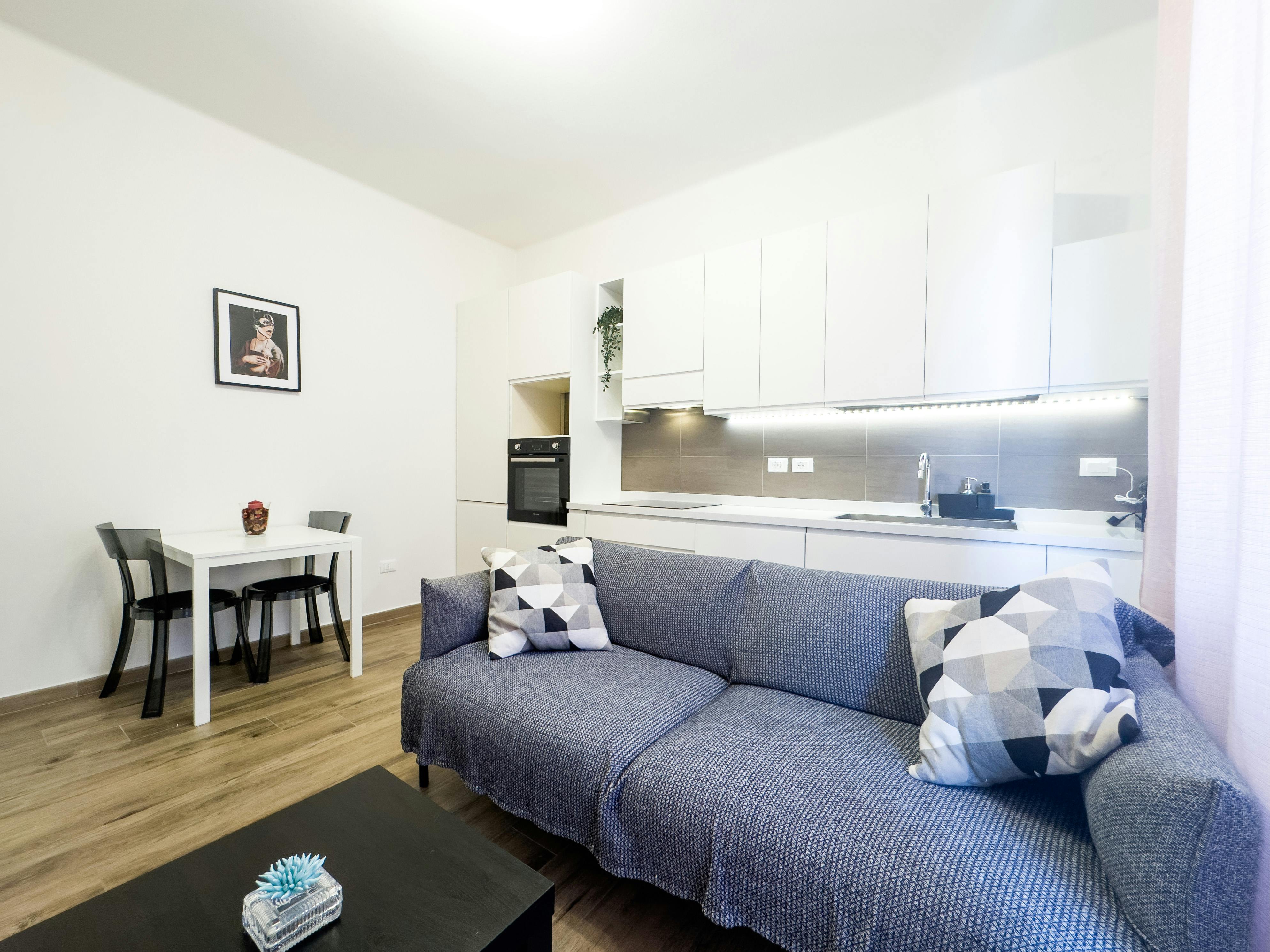 Versione italiana: Delizioso trilocale, finemente arredato, sito al 3 piano senza ascensore con due balconi. Situato a pochi passi dalla fiera di Bologna e dalle bellezze del centro storico. Questo nuovo e moderno appartamento si apre su una zona living dove sono presenti un comodo divano, tv a schermo piatto, un tavolo con sedie e un angolo cottura provvisto di tutti gli elettrodomestici principali (frigo, forno, microonde, macchina per il caffè e lavastoviglie). Dal corridoio si accede alle due camere da letto dove troviamo un comodo letto, che all’occorrenza si apre e ospita due persone, e uno matrimoniale. In bagno sono presenti un box doccia, un bidet e una lavatrice. Il quartiere è fornitissimo e presenta qualsiasi tipo di servizi, fra cui molti supermercati, bar e una palestra. Piazza dell'Unità, adiacente all'appartamento, è servita di numerosi autobus che portano nelle varie aree del centro di Bologna. Per i soggiorni oltre i 30 giorni in Italia è necessario avere il "Codice Fiscale" italiano che potrete richiedere al vostro arrivo presso l' "Agenzia delle Entrate". Segnaliamo inoltre che è possibile recedere dal contratto con un mese di preavviso; il costo della pratica è di 150,00 € + IVA oltre all'addebito delle commissioni di Housing Anywhere proporzionate per i giorni non goduti. English version: Delightful three-room apartment, finely furnished, located on the 3rd floor without elevator with two balconies. Located a few steps from the fair of Bologna and the beauties of the historic center. This new and modern apartment opens onto a living area where there is a comfortable sofa, flat screen TV, a table with chairs and a kitchenette equipped with all the main appliances (fridge, oven, microwave, coffee machine and dishwasher). From the corridor you access to two bedrooms where we find a comfortable bed, which can be opened and accommodates two people, and one double. The bathroom has a shower, bidet and washing machine. The neighborhood is well stocked and has all kinds of services, including many supermarkets, bars and a gym. Piazza dell'Unità, adjacent to the apartment, is served by numerous buses that take you to various areas of downtown Bologna. For stays longer than 30 days in Italy, it is necessary to have an Italian “Codice Fiscale”, which you can apply for upon your arrival at the “Agenzia delle Entrate”. In addition, it is possible to withdraw from the contract with one month’s notice; the administrative fee is €150.00 + VAT, in addition to the proportional charge of Housing Anywhere’s commissions for the unused days...
