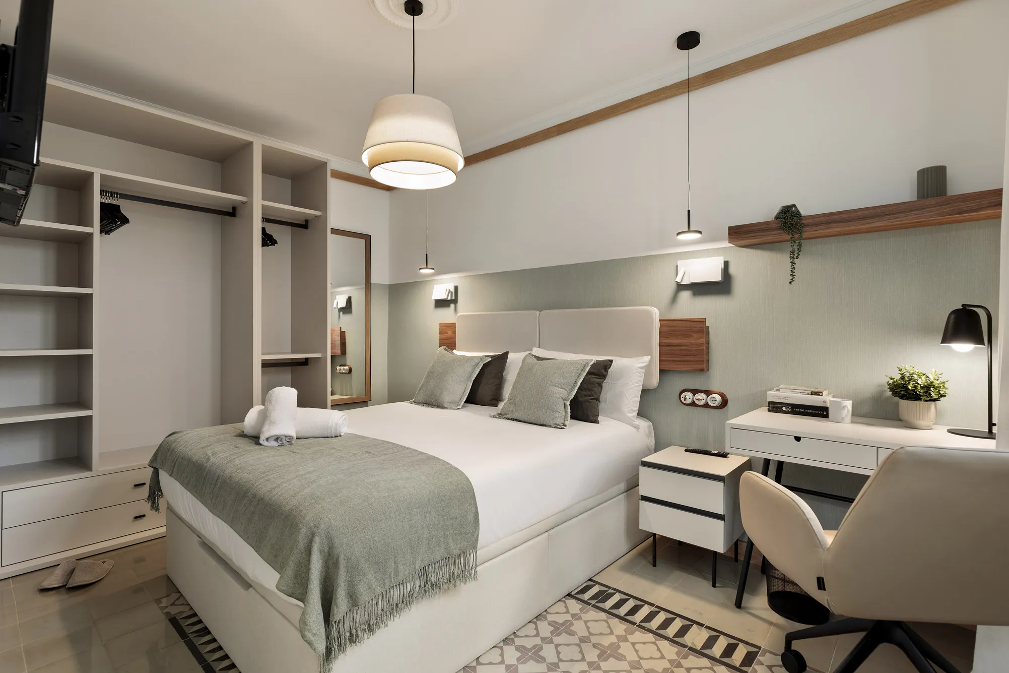 Newly renovated 4-bedroom, 4-bathroom apartments with a modern and elegant style. They are located in the attractive L\'Eixample neighbourhood, on one of the most sought-after pedestrian streets in the city. Consell de Cent has been included in the ranking of streets with the most personality in the world. It is full of restaurants, shops, meeting places and art galleries, it is an exceptional way to discover the soul of Barcelona. A central and well-connected location, just a 5-minute walk from Plaça Cataluña and the Plaça Universitat and Passeig de Gràcia metro stations, which connect to the entire city. They have mosaic floors and high ceilings, typical of the Barcelona architectural style. The apartments are exterior-facing and have a terrace, air conditioning, heating and Wi-Fi connection. The living room has a comfortable sofa and seating area. The kitchen is fully equipped with oven, microwave, fridge, ceramic hob, washing machine and dryer. The bedroom has a TV, a large desk, a bedside table and a wardrobe. Towels and bed linen are provided upon arrival. The bathroom is next to the bedroom but will be for private use for this room. The apartment has home automation details that will make your stay much more comfortable and safe: the lift has direct and exclusive access to each apartment, which is only accessible to guests via a code. Electronic key security both at the apartment entrance and in each room. Adjustable lighting in both the living room and bathrooms, the latter with mirror mode functions for use. The apartments may vary in terms of the floor mosaics and some decorative details in the common areas. Upon arrival, a specific apartment will be assigned. - Prices for bookings of at least 3 months. For shorter bookings, please check prices. Accommodation rates and management fees are subject to the length of the contract and the advance booking date. Rent: €1.100 + €90 utilities Deposit: €1.080 (subject to length of stay) Final cleaning: €100 - Agency fees: * 1-2 months: €400 + VAT * 3-5 months: €600 + VAT * 6-9 months: €750 + VAT * 10-11 months: €1,050 + VAT Our reception is located at 1 Passatge Sert, where you can collect your key between 9:00 and 19:30 Monday to Friday (except public holidays). If your arrival is on Saturday or Sunday (or a weekday public holiday), key collection is at 228 Aribau Street. For business bookings, 21% VAT must be added to the published price. This room is rented exclusively for recreational, vacation, or long-term tourist stays. Gran Tenedo...