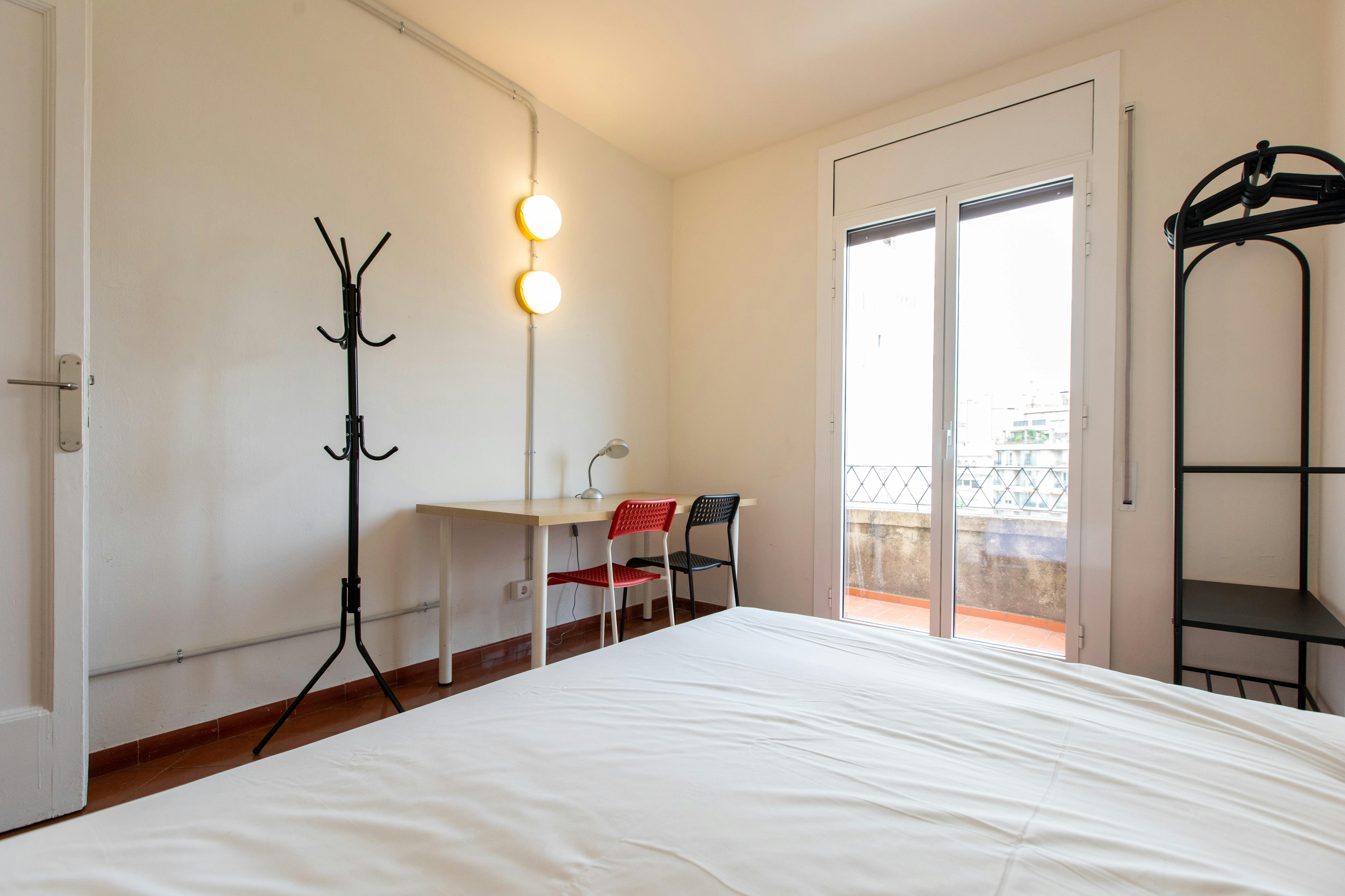 S396 H4 A very comfortable private room in a shared and renovated flat for students. This apartment is located on the 6th floor (real 7th floor) of a historic building in the Eixample district, known for its characteristic grid design and wide avenues. It is very well connected as the nearest metro station is just a 3-minute walk. Also, walking distance to a variety of excellent restaurants, shops, and the historic Monasterio de Pedralbes. This room is fully equipped with a double bed and mattress, a clothes hanging rack, a functional study area with a desk and chair. The room has a split AC and access to a balcony. The flat has 5 private rooms, two renovated bathrooms with a shower and toilet in each one, a renovated kitchen and a cosy living-dining room. It's equipped with a large window that offers fresh air, a pleasant street view and a lot of light during the day. The common areas of the flat are shared among the tenants. We provide basic kitchen utensils and basic household appliances like a washing machine. 50€ for expenses are included in the monthly price (electricity, water and gas, WiFi internet access - shared WiFi). This apartment is a perfect choice for you to meet new people. A great environment is guaranteed! *Overnight guests allowed with certain rules. *No agency fees. Our requirements: 1. You must be studying or doing an internship in (hidden) 2. You must be younger than 30 3. We require a minimum stay of 4 months. 3. A transfer of the deposit 600€ is needed to complete the booking. This deposit will be returned at the end of your stay if the room is in good conditions. 4. You must be willing to share the flat with people from different cultures and backgrounds. We encourage you to create a friendly environment!...