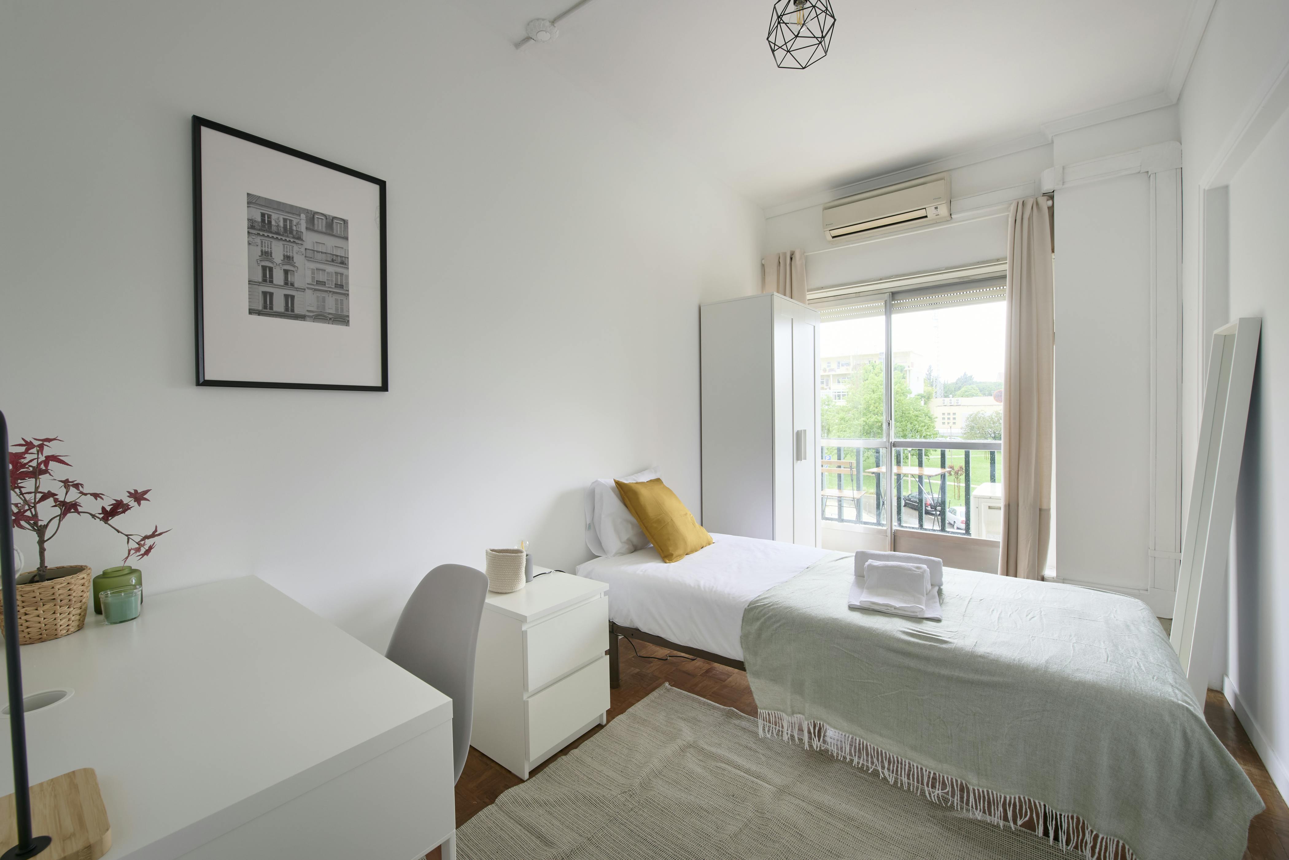 🔸🔸🔸Please note that the accommodation surface area shown in the listing may not be accurate and only estimates the apartment's size.🔸🔸🔸 💢💢💢 🌟 Cozy Room in Vibrant Lisbon – Ideal for Students and Expats! 🌟 🏡 Room Details Discover this charming room located in a stylish apartment on Av. dos Estados Unidos da América. Designed with both comfort and functionality in mind, the room features a comfortable bed, a study desk, and a wardrobe for ample storage space. Large windows fill the room with natural light, creating a bright and welcoming atmosphere that is perfect for relaxing or studying. 🍳 Shared Apartment Amenities This well-maintained apartment offers a fully equipped kitchen, ideal for preparing your favorite meals. The shared living area provides a cozy space to unwind with roommates. High-speed Wi-Fi ensures seamless connectivity for work or leisure, and modern appliances make daily tasks effortless. 📍 Prime Location in Lisbon Situated in the bustling Avenida dos Estados Unidos da América, this property is well-connected to public transport options, including metro and bus stations, allowing you to explore Lisbon with ease. Enjoy the convenience of nearby supermarkets, local cafés, and green spaces for leisurely strolls. With a balance of urban energy and serene surroundings, this neighborhood caters to both students and young professionals. 💬 Send a message today to learn more about this cozy room and make it your next home in Lisbon! 🌞🌍 Please note: ✔Utilities up to €30 are included. ✔Security Deposit: This is a refundable amount held to cover any damages to the property beyond normal wear and tear. Please make sure you understand the terms for the return of this deposit when you decide to move out. ✔The Administration Fee is non-refundable. ✔The last month's rent must be paid before the check-in date. ✔An additional tenant is possible for an extra charge of €100 per month. ✔ The deposit, administrative fee, and all other monthly fees are to be paid directly to the landlord. 💢💢�...