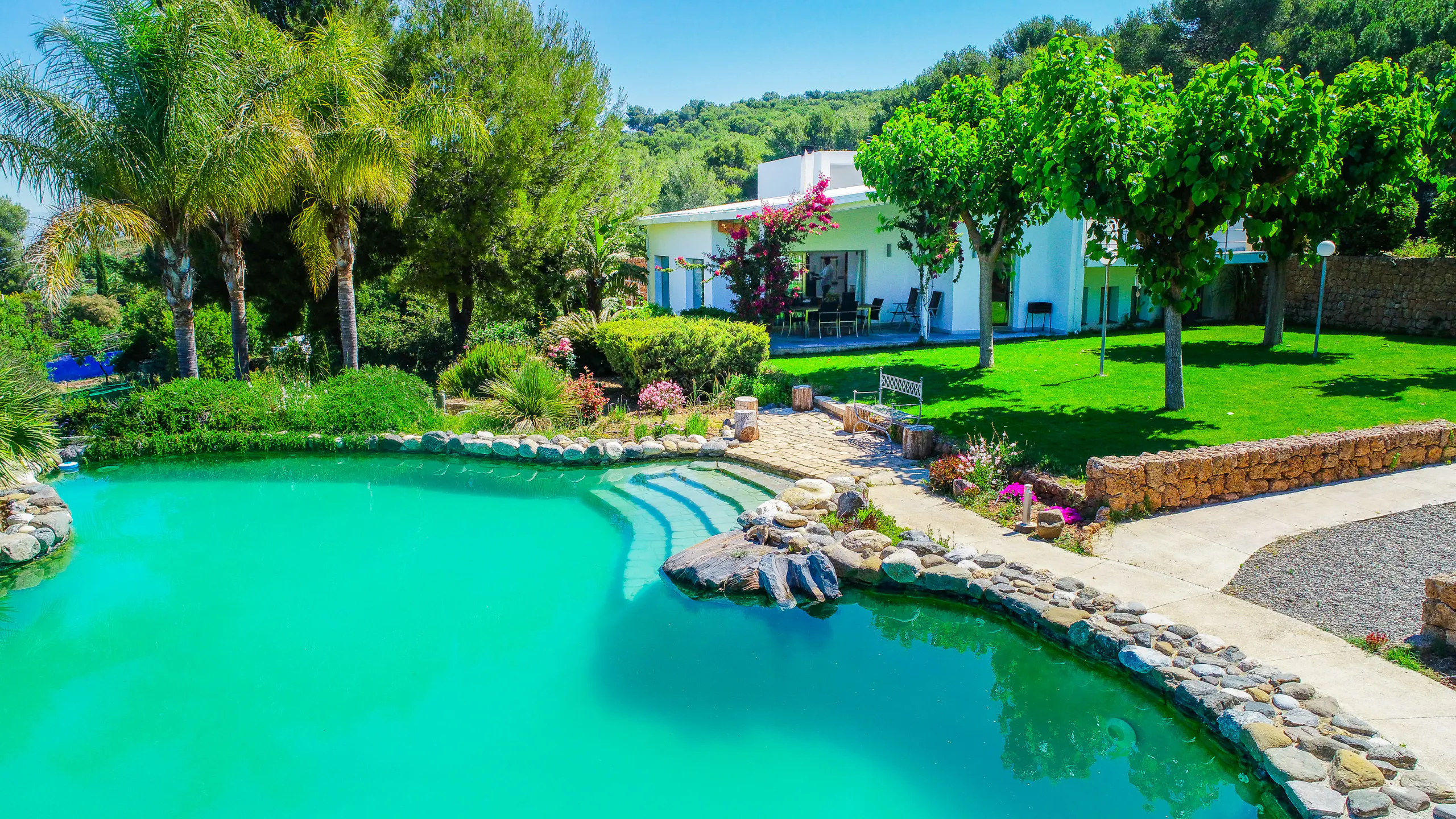 Cubo's Villa El Tejar Fantastic modern style villa with capacity for up to 8 people.. . ------------------------------------------ Wonderful holiday villa with swimming pool ------------------------------------------ . The house is located in a mountain environment, surrounded by Mediterranean forest, with spectacular views of the Guadalhorce Valley and direct access to the Sierra de Mijas.. . It has a large garden on a private property of 10,000 m2, a porch and various terraces as well as an impressive lake pool with saline chlorination.. . The villa has 3 bedrooms, two doubles and a third with two trundle beds (all of them with an en-suite bathroom), large living room with windows to enjoy the panoramic views, fully equipped semi-independent kitchen, living room, dining room. reading, gym and laundry.. . It has a multimedia device to watch streaming content from your mobile phone, tablet or PC on the television in the main living room (with Chromecast).. . It also has a wood stove, underfloor heating, air conditioning, Wi-Fi and an additional fridge and freezer in the gym.. . Neither Cubo's (hidden) nor the owner can be held responsible for possible restrictions in the water supply and how they could affect the traveler's stay, as long as these were decreed by the competent authorities, and were mandatory.. To mitigate these potential inconveniences during your stay, we recommend considering purchasing travel insurance.. . Private chlorine lake pool.. The house is completely air conditioned.. . . GOLF PACKAGES AVAILABLE - VIEW AND BOOK IN OPTIONAL SERVICES. Stay and Play A: Unlimited golf (with breakfast, picnic, par 3s, buggy, practice balls, food and a drink). Stay and Play A: golf clubs. Stay and Play B: Golf Lessons (with breakfast, 2-hour group golf lessons, practice clubs and balls, par 3s, food and a drink). . Please note that to stay at this property it is necessary to retain or pay a deposit before handing over the keys.. The deposit will be unlocked or returned after your stay...