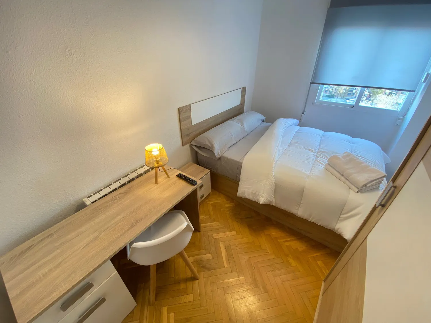 La habitación está totalmente equipada y pensadas para tu comodidad. La habitación cuenta con cama con canapé para almacenamiento extra, y calefacción eléctrica independiente para ajustar la temperatura a tu gusto. Las habitaciones son modernas, luminosas y ofrecen un ambiente tranquilo, ideal tanto para el descanso como para el estudio, escritorio, TV, y mesita de noche. En cuanto a las zonas comunes el piso está totalmente amueblado y equipado, listo para entrar a vivir, todas exteriores, ascensor, cocina con electrodomésticos (nevera, lavadora, microondas, horno y vitrocerámica), 2 baños compartido. Además, dispone de conexión a Internet incluida y dos limpiezas al mes a las zonas comunes. ¡Alquilamos habitaciones en piso compartido! Ubicado en una zona tranquila y bien comunicada, el piso está a solo 5 minutos andando de la estación de Renfe Villaverde Bajo (líneas C3 y C4) y a solo 5 min de metro de Villaverde bajo, y cuenta con varias líneas de autobús cercanas. En los alrededores hay supermercados, a solo 1 min tendrá el Ahorramas, y 4 min del Lidl, y 9 del Mercadona, al igual que farmacias, restaurantes y otros comercios, además de zonas verdes como el Parque Lineal del Manzanares y el Polideportivo Félix Rubio. También se encuentra cerca del Hospital 12 de octubre a 17min en transporte público y con otros centros de salud. El piso está totalmente amueblado y equipado, listo para entrar a vivir, todas exteriores, ascensor, cocina con electrodomésticos (nevera, lavadora, microondas, horno y vitrocerámica), baño compartido. Además, dispone de conexión a Internet incluida y dos limpiezas al mes a zonas comunes. Ideal para estudiantes o profesionales que buscan comodidad y buena conexión con el resto de Madrid....