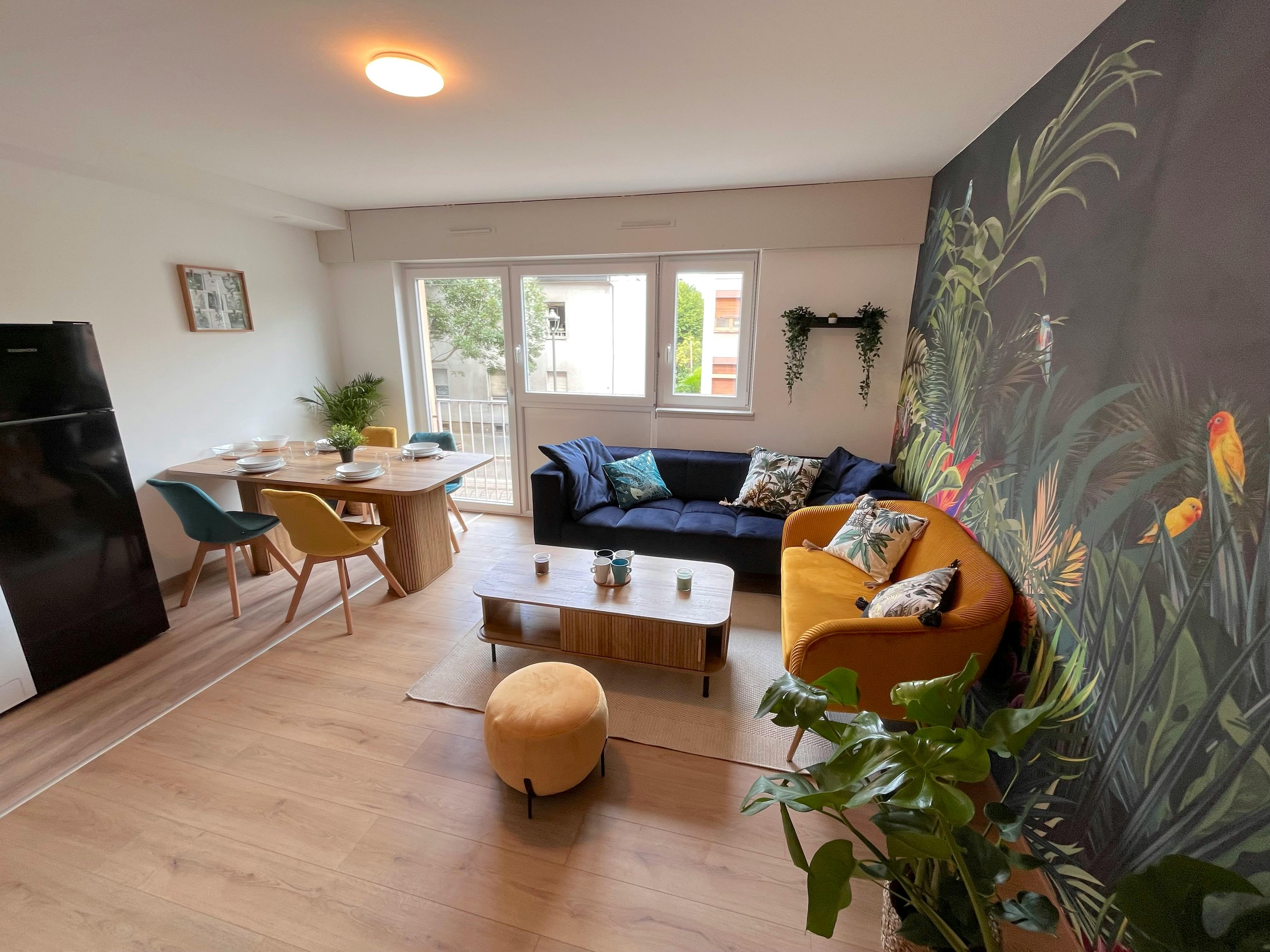 🌟 COLOCATION JUNGLE • SDB privative & climatisation réversible • 100% RÉNOVÉE | ÉQUIPÉE | TOUTES CHARGES INCLUSES Hello you ! 👋 Tu veux vivre ta meilleure vie dans une coloc entièrement rénovée, meublée et équipée à 10 minutes de vélo ou avec le tram, de l’Université d’ Esplanade 🎓 et avec un accès facile au tram. Il reste 1 chambre disponibles dans cette coloc ultra cosy 🛋️ que nous venons tout juste de rénover en Août. Tout est beau, propre et neuf et il y a une climatisation :) L'appartement et les chambres sont entièrement meublés, jusque dans les moindres détails : couette, oreillers et linge de lit sont également fournis, tu as juste à apporter tes valises ! 🍀 Les plus : - Chaque chambre dispose de sa propre salle de bain privative. - Une cuisine full équipée (plaques à inductions, grand plan de travail, four à chaleur tournante, hotte, micro-onde, cafetière, bouilloire). - Local à vélo sécurisé - Garage privatif sécurisé (en option) - À 150 mètre du tram C et de la piste cyclable. Côté quartier, il se trouve au Neudorf, il y a tout à proximité : - un Auchan Supermarché à 6 minutes à pied - une salle de sport à 500 mètres - une piscine olympique à 5 minutes à pied - un parc à 9 minutes à pied - boulangerie, café, restaurant, pharmacie, banque, coiffeur : tout est accessible à quelques minutes de marche. En ce qui concerne le transport : 🚈 La ligne C de tram qui t’amène en 10 minutes à Esplanade. 🅿️ Des places de parking gratuites en face de la résidence & un garage privatif sécurisé en option. ✅ Les charges de 50€ comprennent ABSOLUMENT tout, il n'y a pas 1 seul euro à ajouter, pas même pour l'assurance habitation : - Abonnement Internet Fibre - Télévision 140 chaines - Électricité - Chauffage - Eau Chambre 1 : 12m2, occupée par Aurore, 22 ans, étudiante en Histoire. Chambre 2 : 11m2, 590€ disponible le 21/12 Chambre 3 : 13m2, occupée par Nicolas, 18 ans étudiant à Sciences Po. Chambre 4 : 20m2 , occupée par Marie, 21 ans étudiante en Droit. Le contrat de bail est individuel : pas de clause de solidarité entre les colocataires. L'appartement est éligible aux APL (entre 90€ et 300€ selon ta situation) Visite virtuelle disponible sur demande. A bientôt ! Rém...