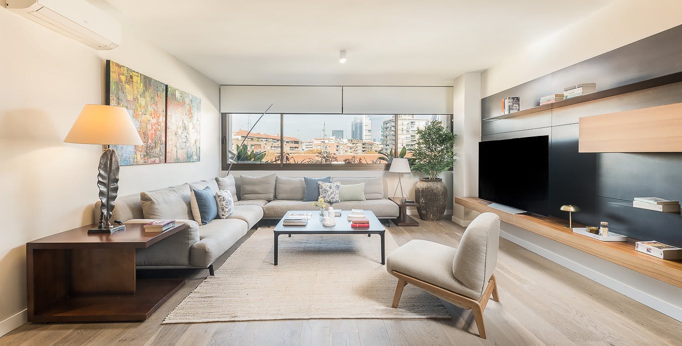 Promos by length of stay in the final price: -Booking + 4 months: 5% discount -Booking + 9 months: 7,5% discount -Booking + 12 months: 10% discount Please contact us to apply for the discount in your booking request! - Utilities included in the price up to 120€ - 180€ depending of the apartment. - Some apartments pets are allow by request. There is an extra charge for pets. Please contact us to know the supplement and availability! -- This apartment, located on the sixth floor, stands out for its modern and elegant design, where natural light takes center stage thanks to its large windows and open views. The neutral color palette is complemented by vibrant decorative touches that bring balance and personality to the space. Natural materials, such as the wooden floors, add warmth, while the other decorative elements contribute sophistication and contemporary style. Functional, minimalist furniture and an open, harmonious layout make this apartment a bright, welcoming, and character-filled home. Francisco Gervás I is located in the Chamartín district, one of Madrid’s most sought-after areas due to its blend of services, tranquility, and excellent connectivity. Nearby are key landmarks such as Paseo de la Castellana, one of the city’s main thoroughfares, and Plaza de Castilla, known for its iconic KIO Towers. Additionally, Chamartín is home to cultural and leisure spaces like the National Music Auditorium, as well as numerous high-quality restaurants and cafés, making it an ideal place both to live and to enjoy its vibrant surroundings...