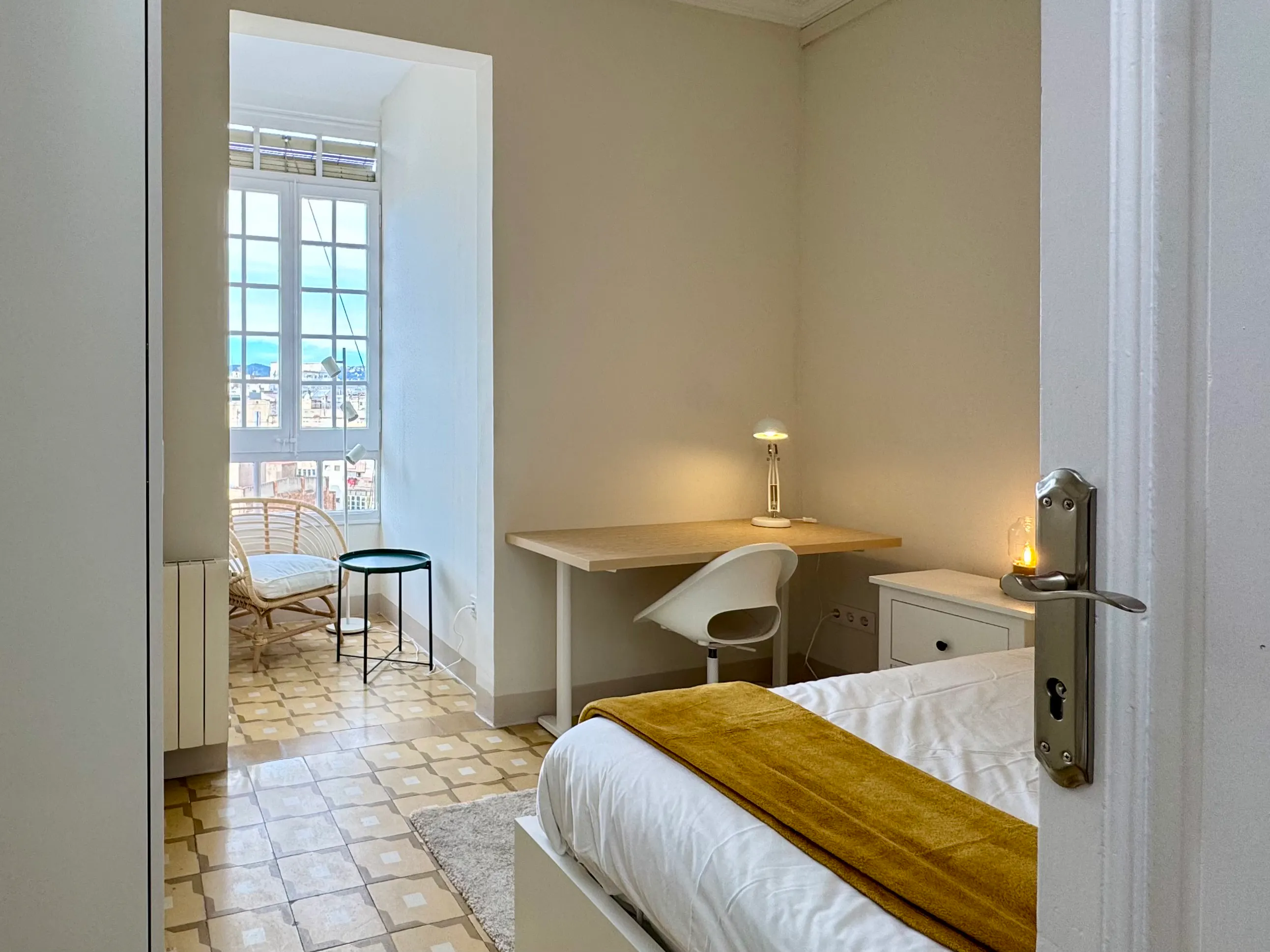 🌟 Bright Double Bedroom in Spacious 5-bedroom Apartment – Barcelona! 🌟 Welcome to your stylish and cozy new home! This beautiful bedroom comes complete with a comfortable double bed 🛏️ for restful nights, a desk for working or studying ✍️, and a spacious wardrobe to keep your belongings organized 👕👗. The apartment is incredibly spacious and designed to cater to all your needs. The sunny living area is a perfect spot to relax, featuring a comfy sofa 🛋️, a TV for entertainment 📺, and a dining table for meals or gatherings 🍴. The kitchen is fully equipped and ready for you to create delicious meals 🍳✨. There are two modern bathrooms, one with a luxurious bath 🛁 for those relaxing evenings. Plus, the apartment has a washing machine for added convenience 🧺. 📍 Neighborhood & Location: Located in the vibrant Eixample district, this apartment offers a quintessential Barcelona experience. The area is known for its elegant grid layout, stunning architecture, and lively atmosphere 🌆. Just a short stroll away, you’ll find the iconic Sagrada Família, as well as charming cafes ☕, trendy restaurants 🍴, and local markets. Eixample is a mix of tradition and modernity, making it one of the most desirable neighborhoods to live in. 🚇 Transportation: The apartment is perfectly connected to Barcelona’s excellent public transport network! The Monumental metro station (L2) is just a few minutes’ walk away 🚉, making it easy to access all corners of the city. Numerous bus stops are also nearby, providing seamless connections to the city center, beaches, and other major attractions. More to know! ✔Brand-new, stylish furniture for your comfort 🛋️ ✔Superfast internet to keep you connected 📶 ✔Complimentary set of fresh sheets included in the price 🛏️ ✔City registration (Empadronamiento) available for stays of 3 months or longer 📄 ✔Weekly cleaning of common areas included to keep your space sparkling 🧹 ✅ Move in and enjoy a worry-free, comfortable stay! https://my.matterport.com/show/?m=6NscA6ZST1...