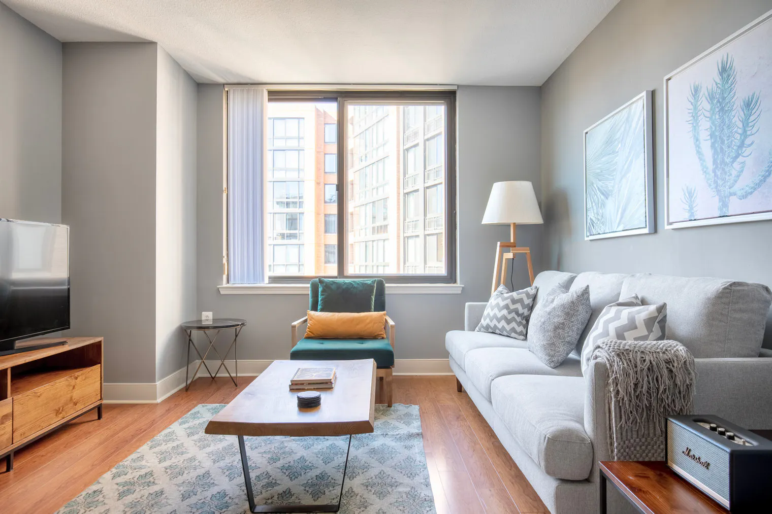 Please, note that the minimum stay for this accommodation is 33 days. Show up and start living from day one in Washington, D.C. with this cozy one bedroom apartment. You’ll love coming home to this thoughtfully furnished, beautifully designed, and fully equipped Mount Vernon Triangle home with stunning views over the city. (ID #WDC1) Designed with you in mind In this apartment, you’ll find a thoughtfully designed space complete with beautiful furniture and a fully equipped kitchen in this one bedroom property. And, thanks to our superior quality mattresses, luxury linens, and towels, you can relax knowing you’ll always feel comfortably at home. When you’re ready for some fun, you can take in the Washington, D.C. vibes or bring the entertainment to you with the premium wireless speaker or smart TV. This apartment also offers in-apartment laundry. Sleeping arrangements Queen Bed, 63in/160cm Amenities Building amenities unique to this one bedroom apartment include an on-site: - BBQ Area - Doorman - Dryer - Elevator - Swimming pool - Washing machine - Lounge - Parking - Pets allowed Arrival and ongoing support Full Maintenance and Technical Support / cleaning requests at a click of a button. Other things to note Building amenities may have an extra cost. This apartment has flexible lease options, allowing you to book it for one month, a year, or more. Pets are welcome, though weight limits and breed restrictions apply and may incur fees. Parking is offered based on availability and is subject to a fee. Completion of the Background check via a link is mandatory after the booking confirmation. All occupants, and anyone booking on an occupant's behalf, will be subject to a background check, which will include a criminal and credit history to the extent permitted by law. United States citizens, U.S. permanent residents, and non U.S. citizens with work visas must provide a social security number to complete the background check. Should guests not meet requirements or decide not to complete these screenings, the reservation must be cancelled by guests. In case of students, proof of University enrollment and a parents screening are mandatory for the confirmation of a booking...