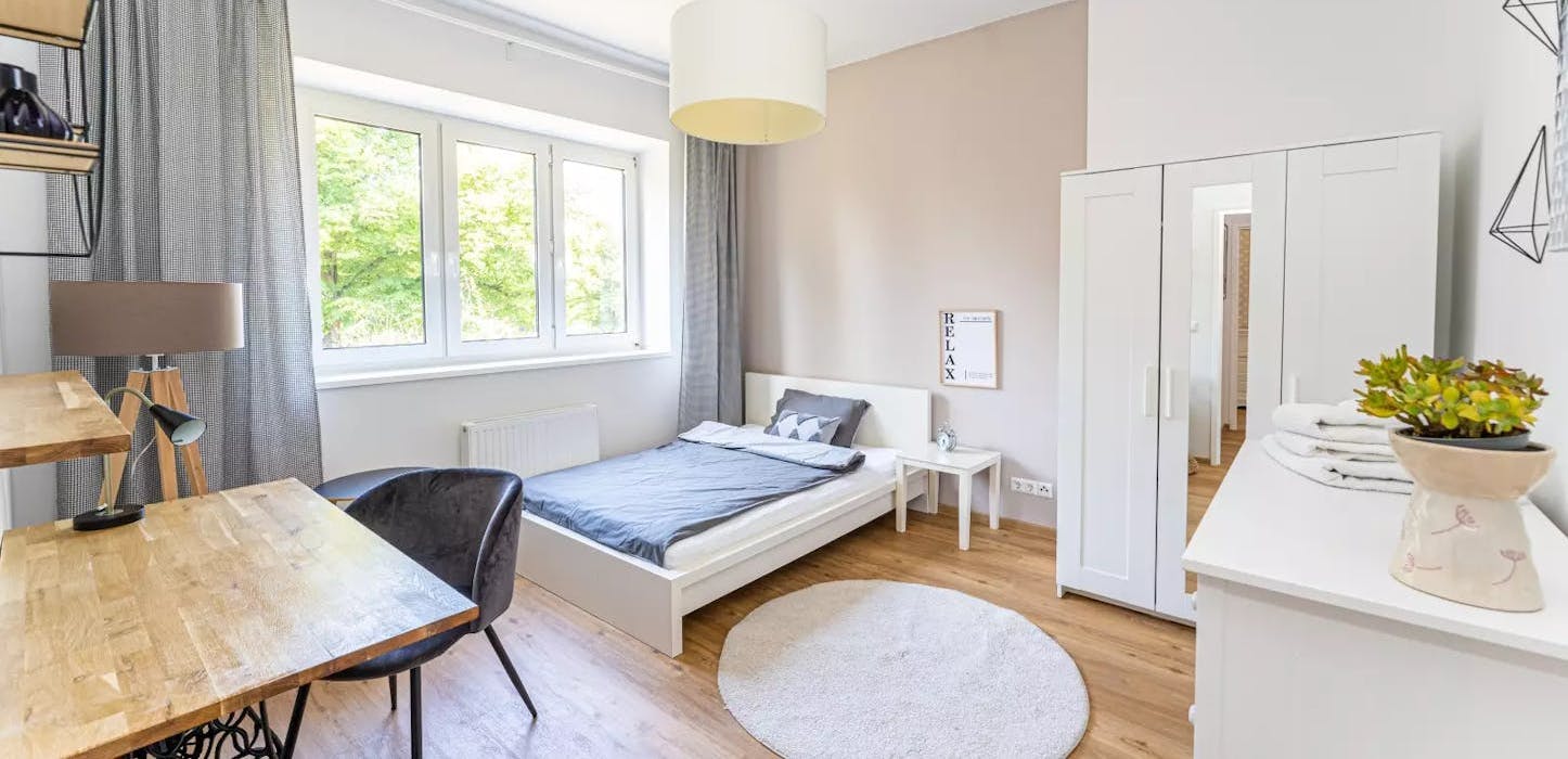 🌟 Modern Room in Apartment with Balcony in Berlin! 🚛✨ Room Features Discover this bright and spacious room, ideal for students and professionals looking for comfort and functionality. The room is furnished with a desk, standalone wardrobe, shelving, chest of drawers, and a heating unit, offering both style and practicality. Enjoy access to a balcony, perfect for relaxing after a busy day. 🏡✨ Apartment Highlights This well-maintained apartment is located on the first floor of a residential building and features three fully furnished bedrooms. The shared spaces include a fully equipped kitchen with modern appliances such as a dishwasher and washing machine, making daily chores a breeze. 🍽️💼 With central water heating and Wi-Fi already installed, you'll enjoy a hassle-free living experience. The property also offers parking facilities for added convenience. 🚗✨ Neighborhood Situated in the charming Braunlager Straße area, the apartment provides easy access to public transport, connecting you to Berlin's vibrant city life. Nearby, you'll find local shops, restaurants, and cafes, making it easy to enjoy the city's culinary scene. The area combines residential calmness with urban accessibility, ensuring you have the best of both worlds. 🌄🚍 📩 Send a message today to learn more about this fantastic room in Berlin...