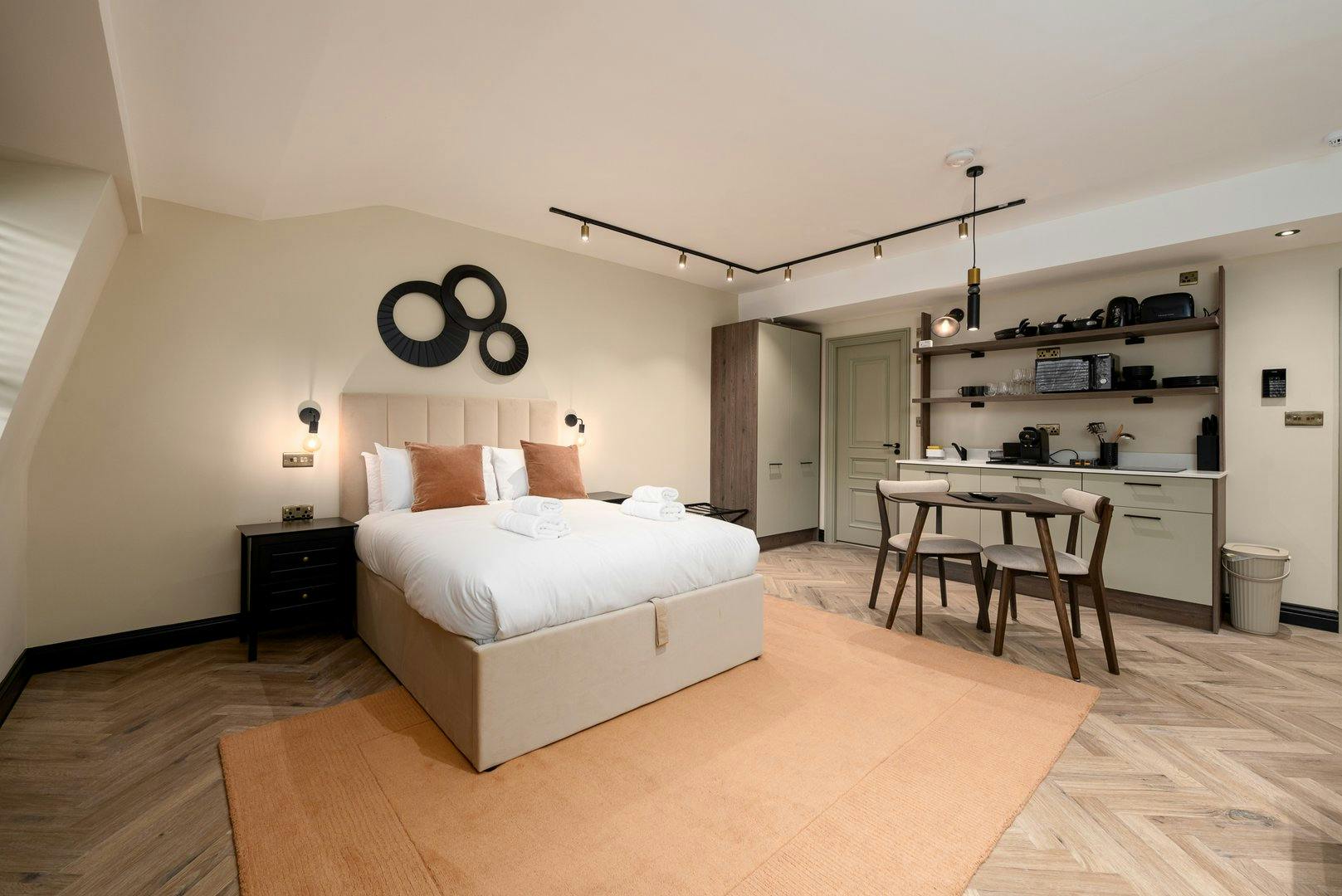 Welcome! This elegant 25m2 studio, on the 3rd floor, is situated close to London's main attractions, including King's Cross Station, Regent's Park and just a short walk from Euston train station. This studio seamlessly blends comfort and style, boasting elegant furnishings and contemporary amenities. Relax on the comfortable double bed with premium linens and enjoy the additional sofa bed for extra sleeping space. The smart TV offers a variety of streaming options (please remember to log out of your accounts upon departure). The modern kitchenette includes appliances as well as essential cookware and crockery that will fulfil any of your culinary requirements. There's also a dining table. The beautifully designed bathroom has all the amenities you will need to freshen up, including fresh towels and toiletries for your convenience. The shared laundry room is equipped with washing machines, clothes dryers, a vacuum and a mop. The studio is always professionally cleaned for your comfort. Please note that you may occasionally hear the faint, muffled sound of the underground train passing below. Additionally, there is construction taking place at the neighbouring property, and scaffolding is currently set up along the exterior of the building. We apologise for any inconvenience this may cause and appreciate your understanding. Enjoy your stay...