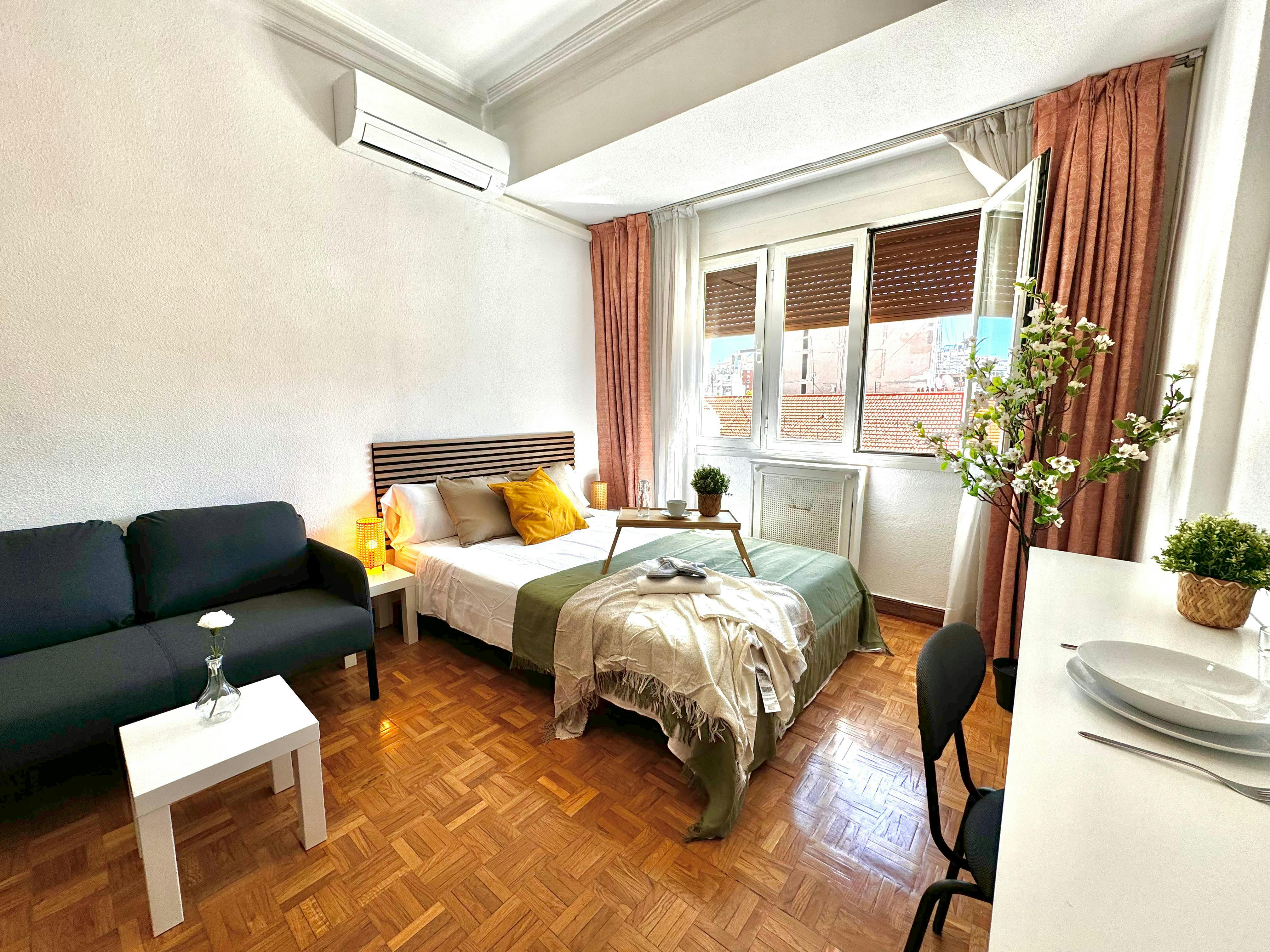 Se alquila magnifica habitación doble con vistas al exterior, a pocos minutos de metro Bernabéu, y a 5 minutos andando de Nuevos ministerios e ideal contactado con autobuses interurbanos a la periferia de Madrid. Se alquila enorme habitación de casi 17 m2 en el centro de Madrid, en vivienda de 4 habitaciones y 2 baños. Para pareja son 70 euros de suplemento. La habitación contiene cama de matrimonio, sofá, escritorio, armario con espejo. En el precio incluyen los gastos de luz, agua y gas, wifi gratuito, además de limpieza de zonas comunes 4 veces al mes. Todas las habitaciones incorporan cerradura, vajilla y demás utensilios para la comodidad del inquilino...