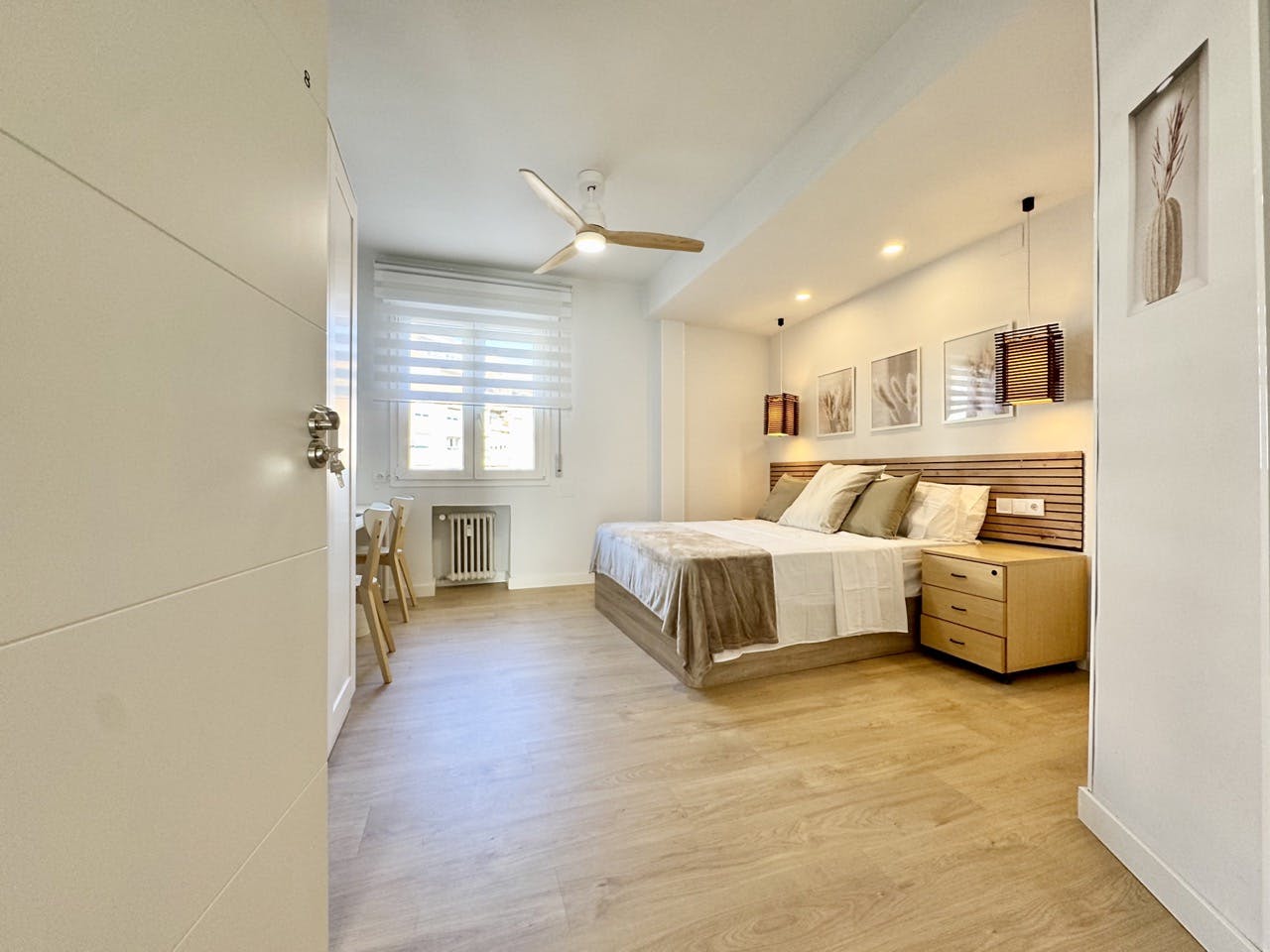 Habitación de cama doble en alquiler en un amplio apartamento de 8 habitaciones totalmente reformado. Cada habitación está equipada con cama, horno, calentador de agua, exprimidor, tendedero, TV y armario, cerradura ofreciendo comodidad y funcionalidad. Las 8 habitaciones comparten 3 baños, asignados por número para garantizar organización y uso exclusivo de cada inquilino. Un espacio moderno y bien distribuido, ideal para disfrutar de una estancia cómoda y práctica...