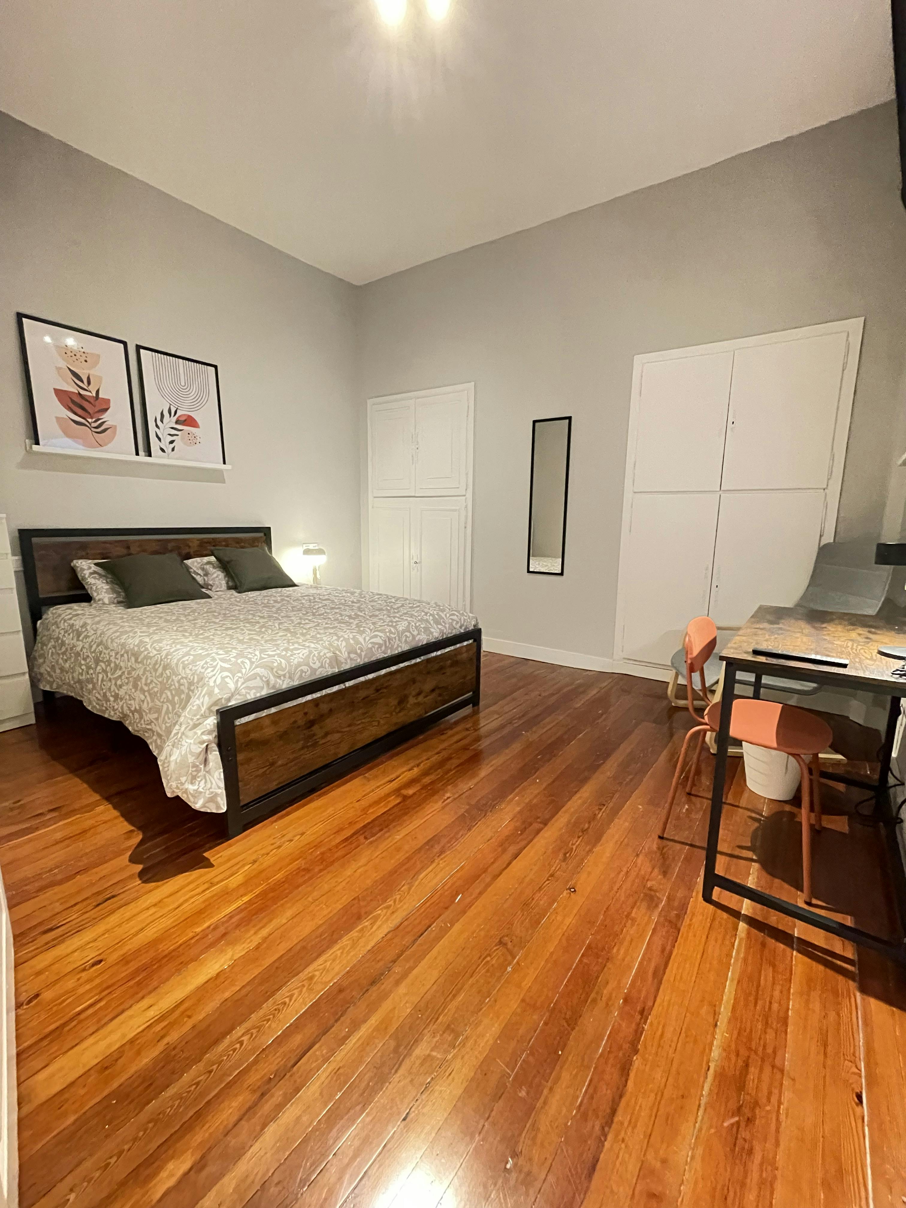 Estupenda habitación junto al Paseo del Arenal, en una de las mejores zonas de Bilbao. Esta habitación en piso compartido ofrece a su huésped todo lo necesario para vivir cómodamente en una de las zonas más dinámicas y atractivas de la ciudad. El piso cuenta con 5 habitaciones y un ambiente muy tranquilo de gente joven y trabajadora. Cuenta con cocina totalmente equipada, baño completo común, zona de comedor, despensa y 5 habitaciones que ofrecen a sus huéspedes: Comodidad y tranquilidad: Disfruta de tu propio espacio en un ambiente relajado de gente joven y trabajadora, que favorecen una convivencia ordenada y armoniosa. Ubicación privilegiada: Cerca del transporte público (a un paso de la parada de metro de Casco Viejo), supermercados y todos los servicios. Piso totalmente equipado. Se trata de una acogedora y luminosa habitación en vivienda compartida, de más de 12 mts2 amueblada y equipada con las siguientes características: Smart TV 32′′ y conexión a internet Armario de gran tamaño, cómoda y mesita de noche Zona de escritorio y lectura, silla e iluminación natural y artificial Butaca de lectura Cama 1,50cm con colchón viscoelástico El precio incluye: – Gastos (agua, luz y gas). – Fibra óptica de internet. – Ropa de cama y juego de toallas. – Servicio semanal de limpieza de zonas comunes. Se pide contrato laboral o acreditación de solvencia económica. ¡No pierdas esta oportunidad! Contacta con nosotros para más información y concertar una visita...