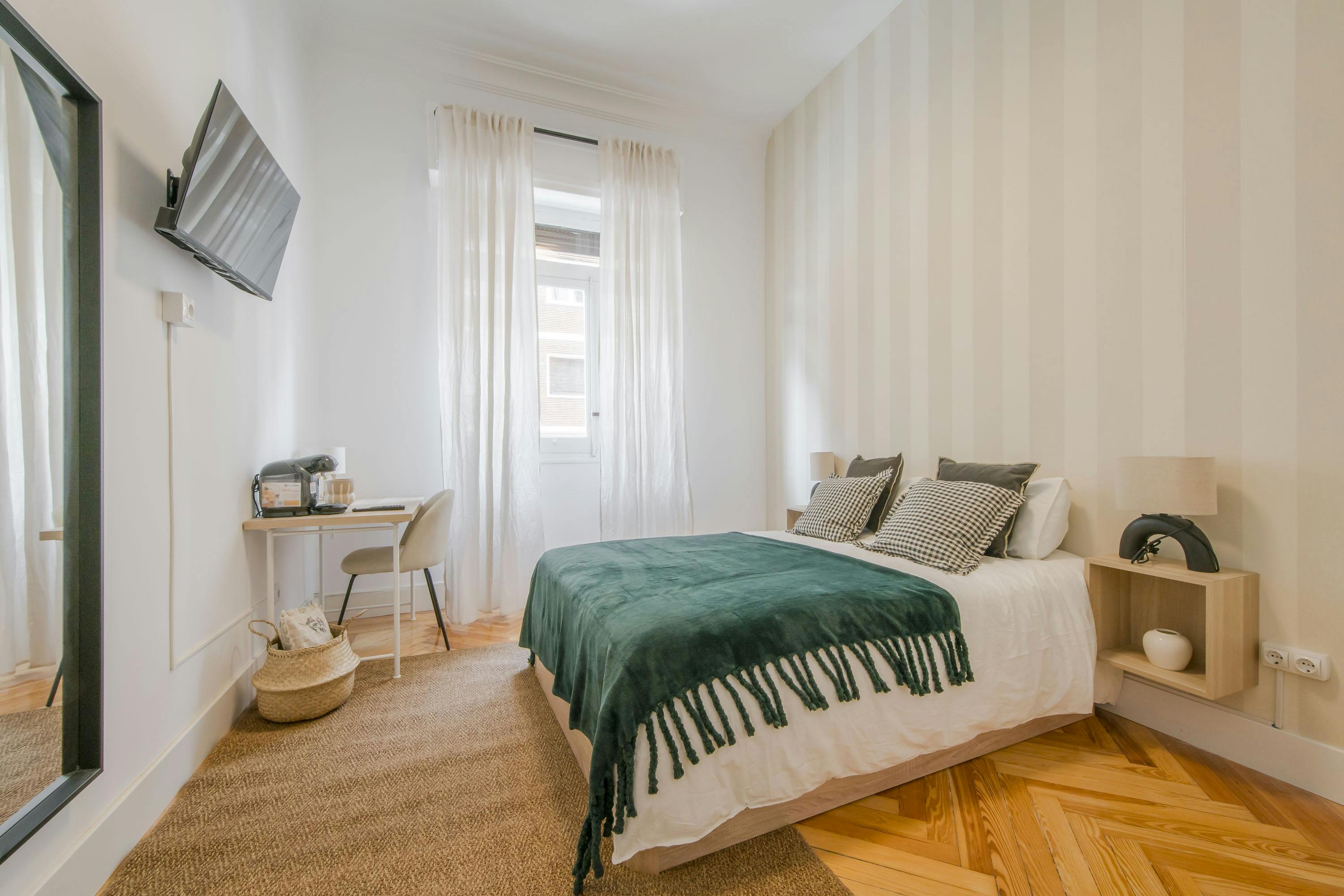 💢💢💢 This bedroom comes with: ✔Exterior window 🛏Type of bed: 135x190 cm We present you a beautiful room in Calle Nuñez de Balboa 42, Madrid. The property consists of: 4 full bathrooms ( one of them inside a room) , fully equipped kitchen (fridge, oven, microwave, ceramic hob, utensils) and 9 bedrooms in total. The room has bed with canapé, mirror, coffee maker, wardrobe, desk, smart tv so you can enjoy your favourite channels and streaming platforms. The price includes: - Maintenance technician - Contract management - Cleaning of the common areas once a week - Flexibility of contracts - Rooms with high quality standards - Lockable door - Customer service - All utilities included (water, electricity, gas and wifi) - Kitchen utensils. Unbeatable location, just a few minutes away you can find the Velázquez Metro stations, bus stops, supermarkets and shops, all together with a spectacular social and cultural life. We are waiting for you! 🔔Administration fee must be paid by cash (Other types of payments, please contact us) 🔔Profile: 18-35 years (older ages may be accepted case by case) 🔔A weekly cleaning in common areas is included in the price. 💢💢💢...