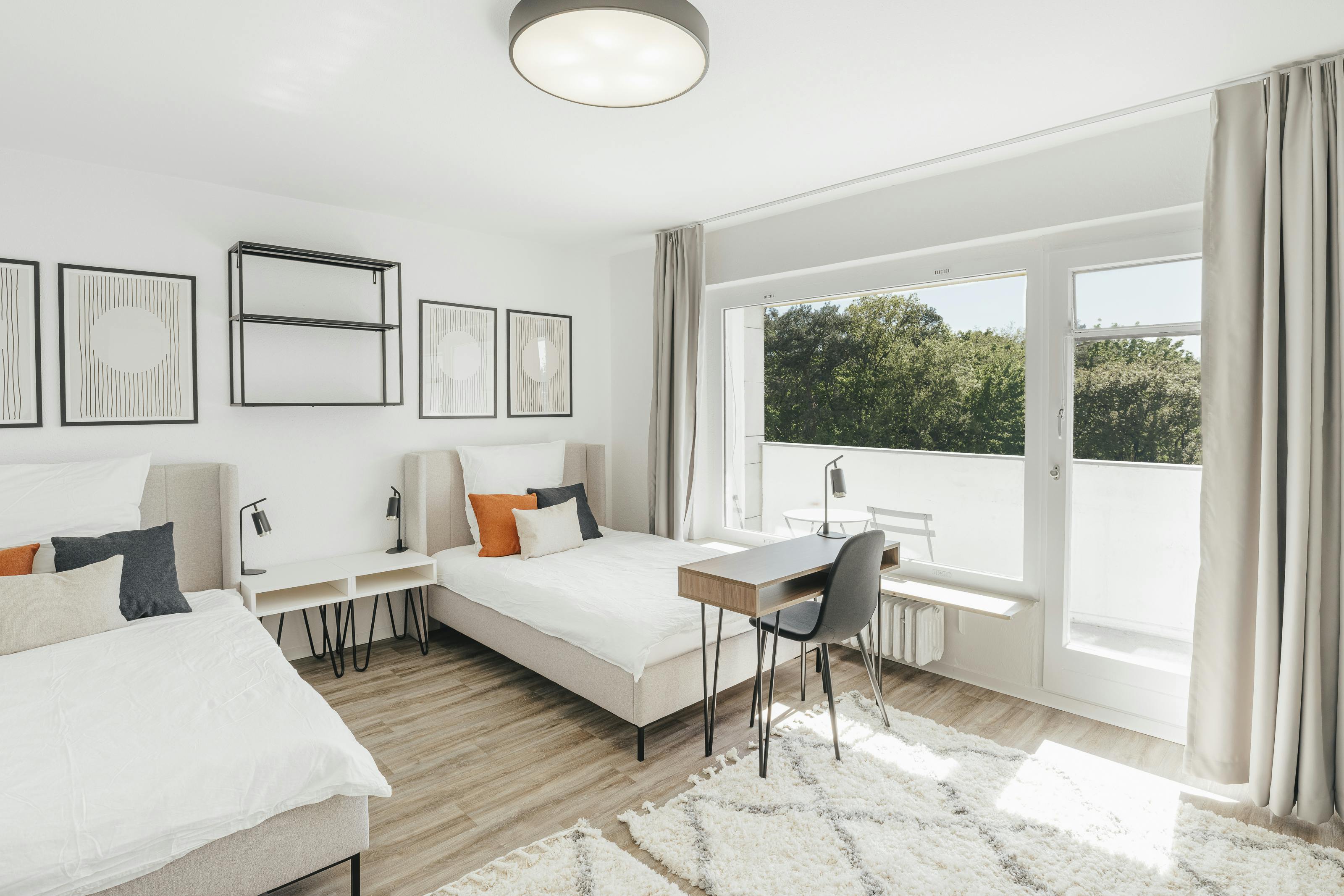 *** 3 bedroom apartment with 4 beds in total - perfect for friends*** Being the perfect nest in the heart of West Berlin, Glockenturm offers bright and open, fully furnished shared all-inclusive apartments, with modern amenities that’ll make you feel right at home. A great starting point for exploring the rest of the city and its many hidden gems. Area In the centre of West Berlin, you’ll find everything from delicious street food to flea markets, to high-end restaurants. Beautiful architecture, historical sites, and the opera are all within walking distance. It manages to be bubbly and active during the day but still somehow quiet and peaceful. Transportation Five minutes away from S-Bahnhof Pichelsberg train station on the S3, S5, S7, S7 and S75 line, one miunte from the bus station Stößenseebrücke on the M-49 line. Apartment Designed with attention and a cool-vibes-only attitude, our fully furnished apartments range from74-85 sqm 3 bedroom apartments. In this bright, modern h(e)aven, you’ll find a Queen size bed, a fully equipped kitchen, a separate bathroom with a walk-in shower and a study area for when the dedicated student in you awakens. Some come with great views, others with a nice and cosy balcony. Information regarding the contract and deposit: To give you the key to your new home, we need to have the deposit (2 months' rent) in our bank account. Careful: proof of transfer is not accepted. So please take this into account when you book and wish to move in in the next couple of days. After the booking on the platform, you have 2 days to register in our system (with your official documents and contact details) and sign the contract. Within 3 days after signing the contract, we must have received the deposit in our bank account. Keep in mind that international transfers can take a few business days so we suggest you transfer the deposit as soon as you sign the contract. If you don't transfer the deposit in time, we'll have to cancel your reservation and you might lose the first month's rent. Feel free to ask me if you have any questions, and hopefully see you soon! Please be aware that HousingAnywhere is an online booking platform. Therefore exchanging contact details and offering viewings is not possible. If you would like to reserve this accommodation, send me a booking request or a message and please mention your age and occupation. I look forward to meeting you! Please note that move-ins are not possible on weekends; they will automatically be scheduled for the following Monday...